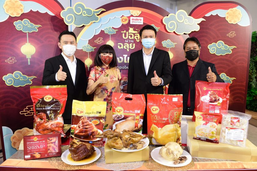 คุณกฤษณ มรกต พร้อมด้วย คุณอนรรฆวี ชูรัตน์ รองกรรมการผู้จัดการอาวุโส และคุณธงชัย ชยชฎานันท์ ผู้ช่วยกรรมการผู้จัดการ ธุรกิจเป็ดเนื้อ CPF ร่วมกับ คุณวิศาล อังกุรรัต ผู้จัดการอาวุโส ฝ่ายจัดซื้อ แผนกสินค้าอาหารสด แม็คโคร เปิดตัวกิจกรรม ปีฉลู…ไหว้ตรุษจีนกับซีพี ภายใต้แนวคิด “ปีฉลู ผ่านฉลุย” ณ ห้องทาวน์ฮอลล์ อาคารทรู ดิจิทัล พาร์ค