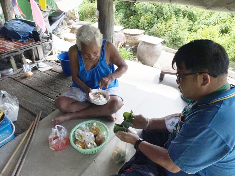 ยายทองเทื้อม ช่างประดิษฐ อายุ 84 ปี อาศัยในพื้นที่หมู่ 7 ต . จำปา อ.ท่าเรือ จ.พระนครศรีอยุธยา ผู้สูงวัยที่ซีพีเอฟรับเข้าร่วมโครงการ ปี 2559 ในความดูแลของโรงงานอาหารสัตว์ท่าเรือ( เป็นผู้สูงวัย 1 ใน 6 ราย ที่โรงงานอาหารสัตว์ท่าเรือดูแล) ป่วยเป็นอัมพฤกษ์ครึ่งท่อนล่างและหูตึง กินและนอนอยู่ที่ศาลาเล็กๆของทางเทศบาลตำบลท่าหลวงสร้างให้ โดยทุกๆวันจะมีเด็กศูนย์ปฏิบัติธรรมนำอาหารมาให้คุณยายเพื่อไว้รับประทานทั้ง 3 มื้อ คุณยายมีรายได้จากเบี้ยยังชีพคนพิการ 800 บาทต่อเดือน เบี้ยยังชีพผู้สูงอายุ 800 บาทต่อเดือน และได้รับเงินช่วยเหลือในโครงการกองทุนซีพีเอฟ คืนสุขผู้สูงวัย เดือนละ 2,000 บาท เป็นเวลา 5 ปีแล้ว
