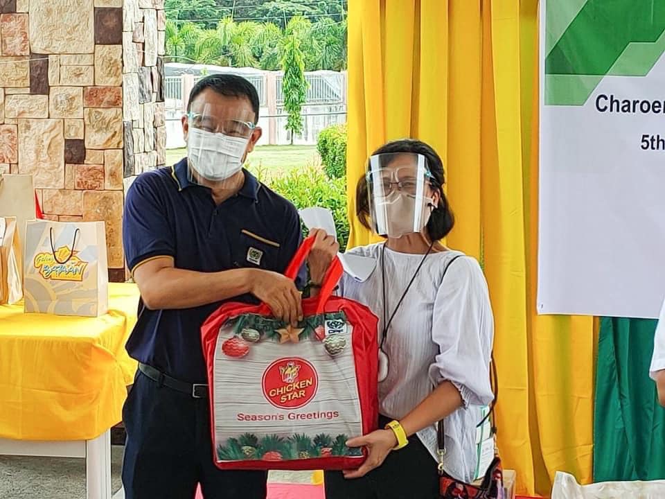 คุณวศิน เรืองประทีปแสง เอกอัครราชทูตไทย ประจำกรุงมะนิลา พร้อมด้วย น.อ.(พิเศษ) พลวัตร อินทรวิเศษ ผู้ช่วยทูตฝ่ายทหารอากาศ ประจำกรุงมะลิลา ประเทศฟิลิปปินส์ นาวาเอก พันณรงค์ ยุทธวงศ์ ผู้ช่วยทูตฝ่ายทหารเรือไทยประจำกรุงมะนิลา ร่วมกับ CPF ฟิลิปปินส์ นำโดย คุณสุนทร ตันทนะเทวินทร์ รองประธานกรรมการ และ คุณอุดมศักดิ์ อักษรภักดี กรรมการผู้จัดการ ธุรกิจสัตว์น้ำ ซีพีเอฟ ฟิลิปปินส์ ผนึกกำลังจัดกิจกรรมบริจาคข้าวสาร 2,000 กิโลกรัม ปลากระป๋อง 2,000 กระป๋อง นมผง 2,214 ห่อ รวมทั้ง แอลกอฮอล์ 100 ลิตร หน้ากากอนามัย 2,000 ชิ้น และ Face Shield 300 ชิ้น ให้กับเทศบาลเมืองซามาล เพื่อนำไปแจกจ่ายให้กับชาวฟิลิปปินส์ บรรเทาความเดือดร้อนในเบื้องต้น หลังรับผลกระทบจากไวรัสโควิด-19 โดยมี คุณไอด้า มาคาลิเนา นายกเทศมนตรีเมืองซามาล รับมอบ ณ โรงงานอาหารสัตว์น้ำบาตาอาน ในการนี้ ยังได้มอบถุงยังชีพจำนวน 300 ถุง เพื่อช่วยเหลือและบรรเทาความเดือดร้อนให้กับพนักงานและคนงานของบริษัทฯ ก้าวผ่านวิกฤตโควิดไปด้วยกัน