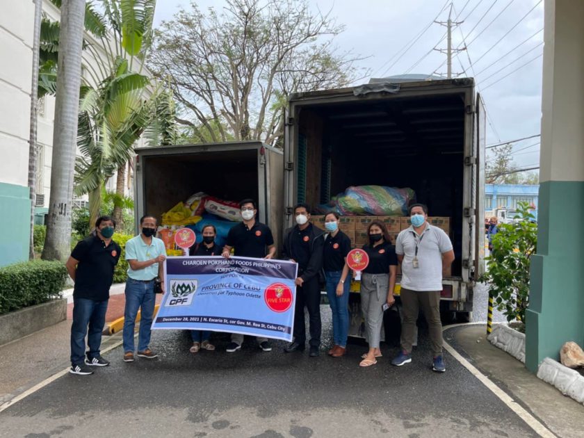 คุณประทีป ทองจันทร์ รองกรรมการผู้จัดการ และพนักงาน CPF ฟิลิปปินส์ เป็นตัวแทนบริษัทฯ มอบข้าวสาร อาหารแห้ง และน้ำตื่ม ช่วยเหลือและบรรเทาความเดือดร้อนให้ผู้ประสบภัยจากพายุไต้ฝุ่น “ราย” Rai หรือพายุ “Odette” ณ Cebu Provincial Capital