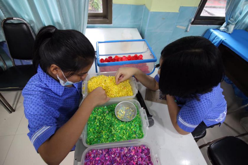 พร้อมกันนี้ คุณทิพปภา เกิดถาวร และ คุณวรพร พัฒนเตชะ ตัวแทนจากโครงการ Precious Plastic Bangkok (PPB) จัดอบรมเชิงปฏิบัติการ (เวิร์กช็อป) การคัดแยกขยะ การรีไซเคิลขยะพลาสติก นักเรียนได้ทดลองทำผลิตภัณฑ์จากขยะพลาสติกด้วยเครื่องจักรขนาดเล็ก อาทิ ชาม กระถางต้นไม้ เป็นต้น และให้ชุมชนเป็นศูนย์กลางนำขยะพลาสติกมารีไซเคิลเป็นผลิตภัณฑ์ใหม่ที่มีมูลค่า