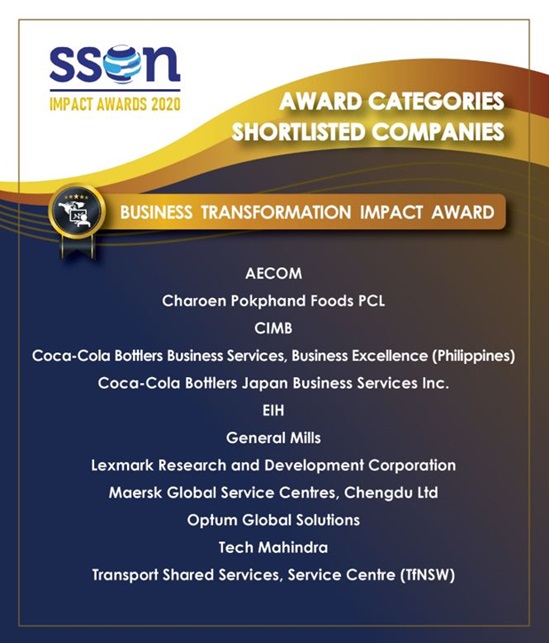 นอกจากนี้ ศูนย์ SSC ของ ซีพีเอฟ ยังได้ผ่านการคัดเลือกจาก Shared Services and Outsourcing Network (SSON) ผู้ให้บริการและผู้เชี่ยวชาญด้าน Shared Services ระดับโลก ให้เข้ารอบการคัดเลือกรางวัล SSON’s Impact Awards อย่างต่อเนื่อง ได้แก่ SSON IMPACT AWARDS 2019 สาขา AUTOMATION IMPACT AWARD, SSON IMPACT AWARDS 2020 สาขา BUSINESS TRANSFORMATION IMPACT AWARD![]()