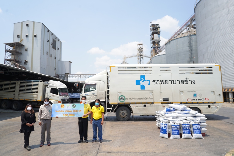 โรงงานอาหารสัตว์ซีพีเอฟ หนองแค จ. สระบุรี : วันเสาร์ที่ 2 พฤษภาคม 2563 บริษัท ซีพีเอฟ (ประเทศไทย) จำกัด (มหาชน) โดยกิจการอาหารโค ธุรกิจอาหารสัตว์บก มอบอาหารช้าง เอราวัณ E3 จำนวน 10,000 กิโลกรัม หรือ 10 ตัน เพื่อแก้ไขปัญหาช้างขาดแคลนอาหาร เนื่องจากภาวะโรคระบาด COVID 19 ผ่านกองทุนวิจัย และอนุรักษ์ช้างไทย ที่จะทำหน้าที่เป็นศูนย์กลางในการกระจาย อาหารช้าง ไปช่วยช้างที่ได้รับผลกระทบ จากการที่ธุรกิจท่องเที่ยวหยุดชะงัก