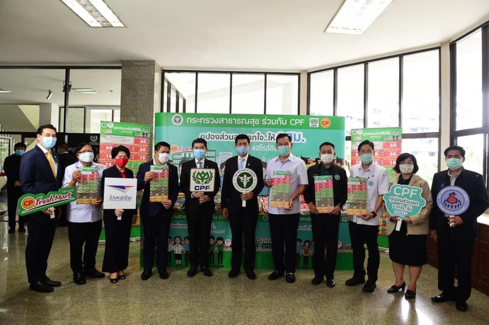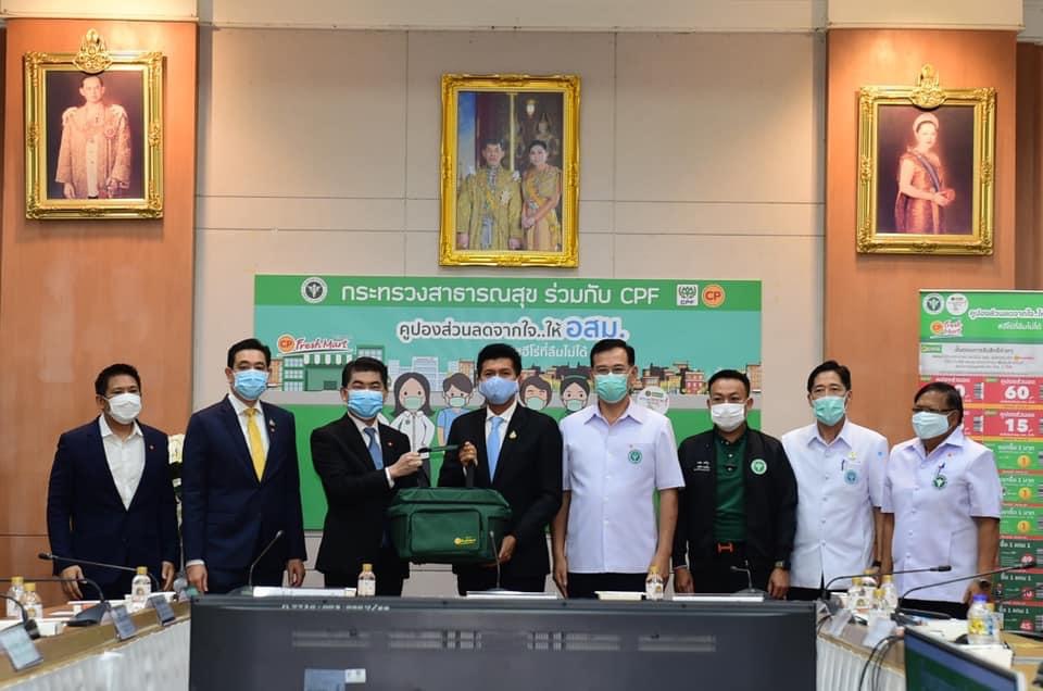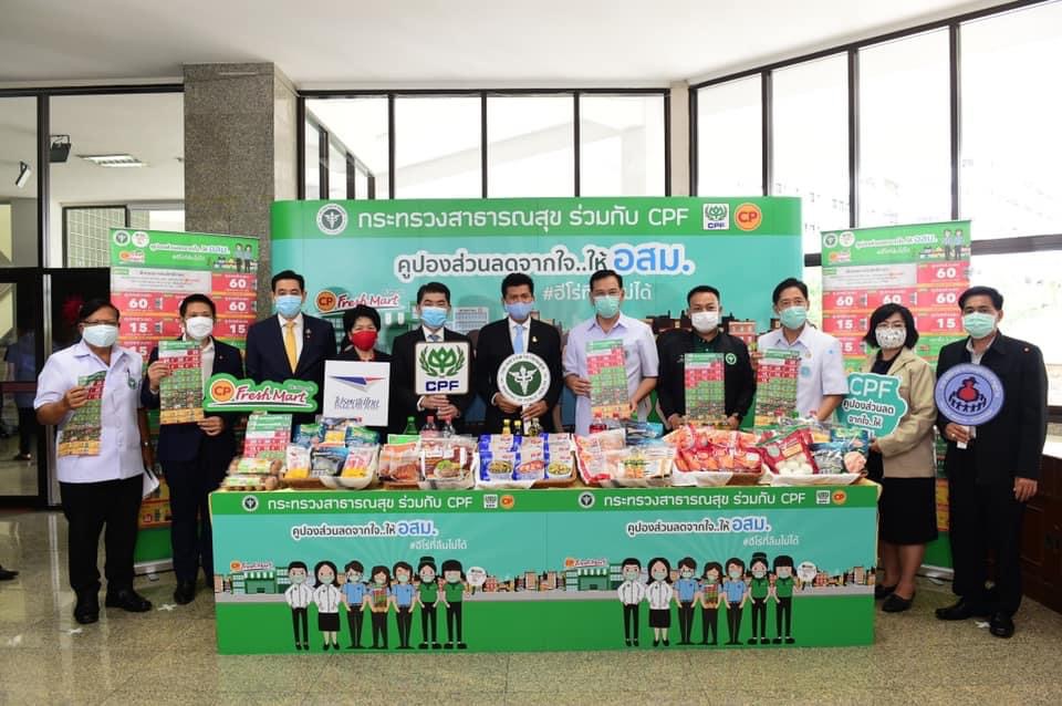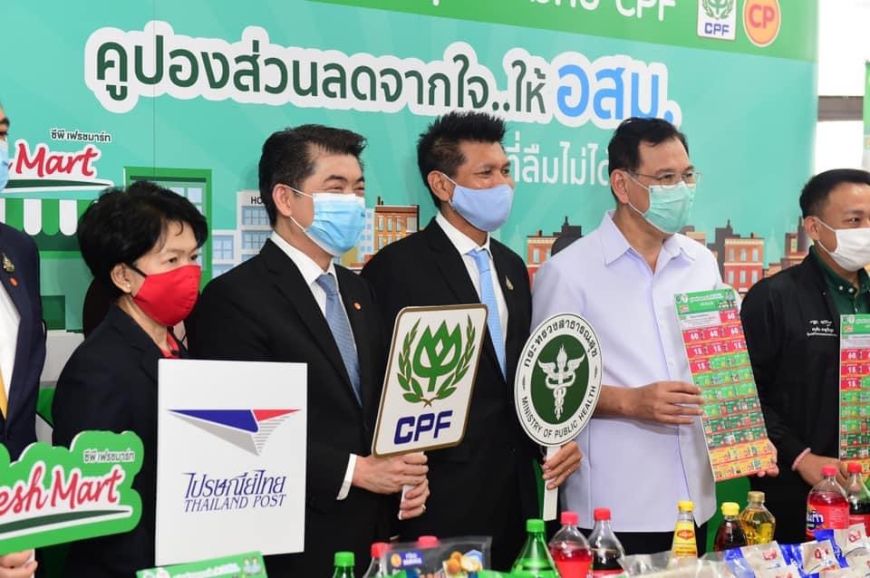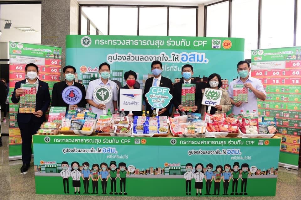 ดร.สาธิต ปิตุเตชะ รมช.สาธารณสุข พร้อมด้วย คุณประสิทธิ์ บุญดวงประเสริฐ CEO ซีพีเอฟ ร่วมเปิดโครงการ “คูปองส่วนลดจากใจ…ให้ อสม. #ฮีโร่ที่ลืมไม่ได้” ให้กำลังใจให้อาสาสมัครสาธารณสุขประจำหมู่บ้าน (อสม.) ทั่วประเทศ โดยมอบส่วนลดสุดพิเศษจากใจ ช่วยลดค่าครองชีพ สำหรับการซื้อสินค้าอาหารในร้านซีพี เฟรชมาร์ท จำนวน 1 ล้านใบ ให้ อสม. ที่ปฏิบัติงานอย่างเข้มแข็งต่อเนื่องในการสนับสนุนการควบคุมการแพร่ระบาดของโรคโควิด-19