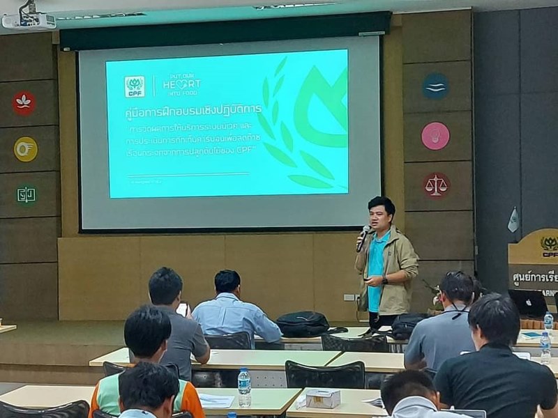 องค์การบริหารจัดการก๊าซเรือนกระจก (องค์การมหาชน) หรือ อบก. ร่วมกับซีพีเอฟจัดอบรมหลักสูตร “การวัดผลการให้บริการระบบนิเวศและการประเมินการกักเก็บคาร์บอน เพื่อลดก๊าซเรือนกระจกจากการปลูกต้นไม้ของ CPF” ให้กับพนักงานต่อเนื่องเป็นปีที่ 6 โดยเฉพาะพนักงานในส่วนฟาร์ม โรงงานที่มีการปลูกต้นไม้ เพื่อให้มีทักษะในการวัดผลการให้บริการระบบนิเวศ วัดการเจริญเติบโตของต้นไม้ และสามารถประเมินการกักเก็บคาร์บอนจากการปลูกต้นไม เพื่อช่วยบรรเทาปัญหาการปล่อยก๊าซเรือนกระจกและการเปลี่ยนแปลงของสภาพภูมิอากาศจากภาวะโลกร้อน