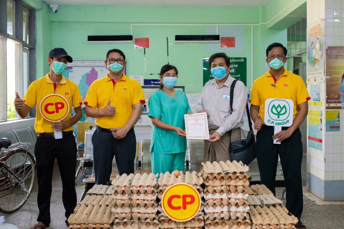 เมื่อวันที่ 8 พฤษภาคม 2563 บริษัทเมียนม่าซีพีไลฟ์สต๊อก จำกัด ได้ร่วมกิจกรรมกับทางกรมปศุสัตว์ในการสนับสนุนอาหารและไข่ไก่ ให้แก่ศูนย์กักตัวผู้ป่วย Covid-19 โดยการนำของ Dr.Kan Tun Win CEC member of Myanmar Livestock Federation เพื่อช่วยเหลือด้านอาหารสำหรับผู้ป่วย Covid-19 ตามหลักสามประโยชน์สู่ความยั่งยืน เครือฯ