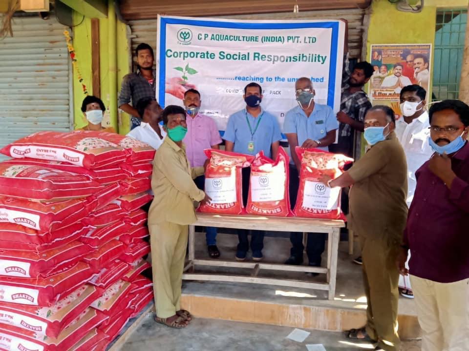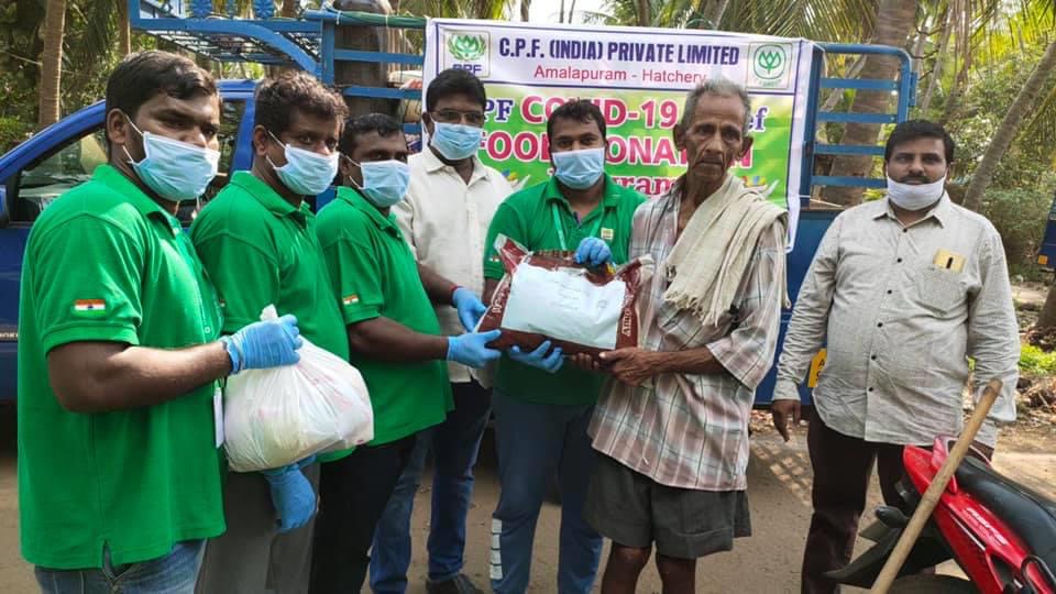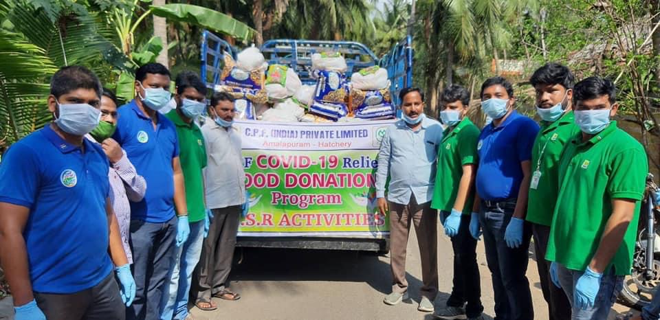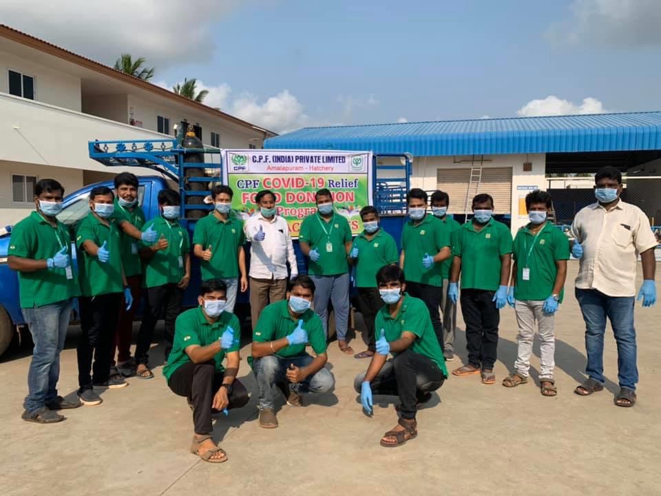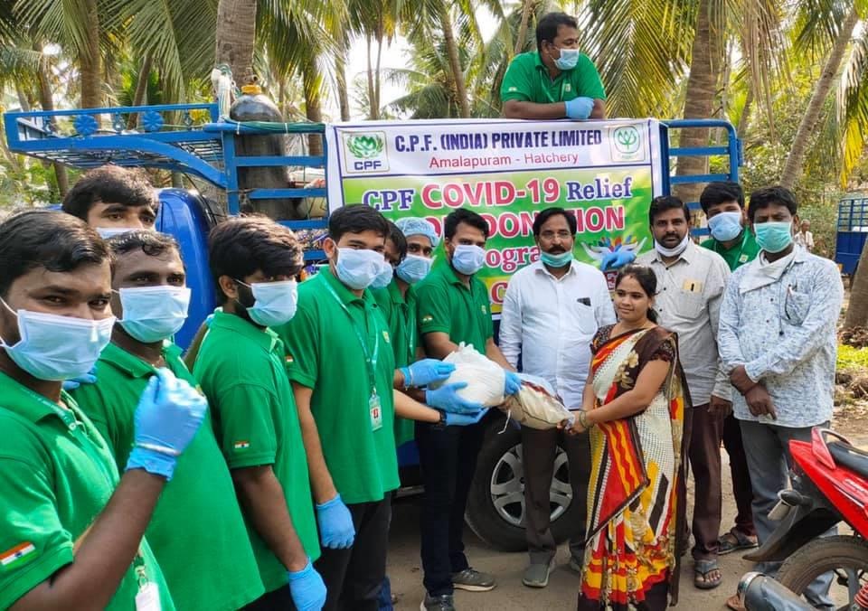คุณอำนาจ ลังเดช รองกรรมการผู้จัดการอาวุโส ธุรกิจสัตว์น้ำครบวงจร พร้อมด้วย คุณกาเนส อารีเคีย รองกรรมการผู้จัดการอาวุโส ด้านการตลาดรัฐอันตรประเทศ นำคณะผู้บริหารและพนักงานซีพีเอฟ อินเดีย โรงเพาะฟักลูกกุ้งอมาปูรั่ม ร่วมมอบอาหาร ข้าวสารและถุงยังชีพ ในโครงการ “CPF ส่งอาหารจากใจ ร่วมต้านภัยโควิด-19” เพื่อช่วยบรรเทาความเดือดร้อนให้แก่ผู้ยากไร้ 500 ครอบครัว หลังได้รับผลกระทบจากสถานการณ์โควิด-19 ณ เมืองบิมาว่ารั่ม ประเทศอินเดีย