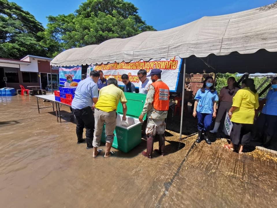 คุณเอกชัย สมจันทร์ ผู้ช่วยกรรมการผู้จัดการ นำผู้บริหารและพนักงานจิตอาสา CPF ธุรกิจสุกร เป็นตัวแทนบริษัทฯ มอบ ผลิตภัณฑ์อาหารคุณภาพ สด สะอาด ปลอดภัย จาก CPF ได้แก่ เนื้อหมู 200 กิโลกรัม, ไข่ไก่ 3,000 ฟองและน้ำดื่ม 3,000 ขวด โดยมี คุณวัลลพ ประวัติวงศ์ นายอำเภอกบินทร์บุรี รับมอบ เพื่อนำไปจัดทำอาหารปรุงสุกพร้อมทาน แจกจ่ายให้ผู้ประสบภัยน้ำท่วม ชาว อ.กบินทร์บุรี ใน 3 พื้นที่ ได้แก่ ชุมชนตลาดเก่ากบินทร์, บ้านโนนฝาว ต.วังตะเคียน และบ้านปากน้ำ ต.บ่อทอง รวม 345 หลังคาเรือน