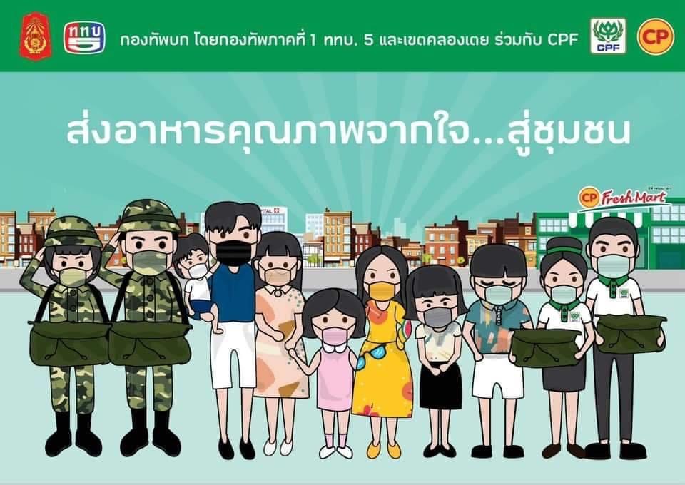 การส่งมอบอาหารให้ประชาชนชาวชุมชนพัฒนาใหม่ (คั่วพริก) ในครั้งนี้ เป็นส่วนหนึ่งของการดำเนินโครงการ “กองทัพภาคที่ 1 ร่วมกับ CPF ส่งอาหารคุณภาพจากใจ…สู่ชุมชน” ซึ่งมอบอาหารแก่ประชากรทุกครัวเรือนในชุมชนแออัดเขตคลองเตยทั้ง 22 ชุมชน จำนวน 8,499 ครัวเรือน เพื่อช่วยเหลือประเทศชาติ ประชาชน ให้ก้าวผ่านวิกฤตไวรัสโควิด19 ไปด้วยกัน ภายใต้หลักคิด Good Citizen Organization กล่าวคือเป็นบริษัทที่ร่วมสร้างและดูแลสังคม ควบคู่ไปกับการดำเนินธุรกิจเพื่อสร้างคุณค่าให้กับประเทศ