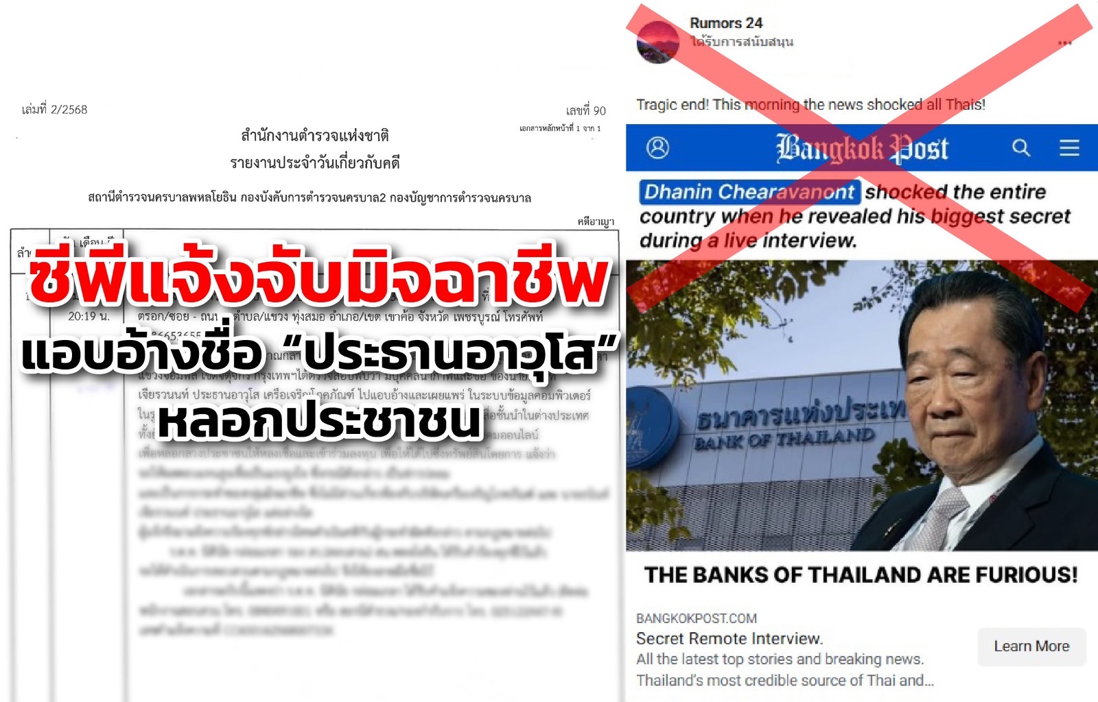 จากกรณีที่กลุ่มมิจฉาชีพได้แอบอ้างชื่อและภาพของ นายธนินท์ เจียรวนนท์ ประธานอาวุโส เครือเจริญโภคภัณฑ์ เผยแพร่ในเว็บไซต์และสื่อสังคมออนไลน์ พร้อมทั้งจัดทำภาพและข้อความหลอกลวงให้ดูเหมือนเป็นข่าวจากสื่อชั้นนำระดับโลก โดยมีเป้าหมายล่อลวงประชาชนให้ร่วมลงทุนด้วยการโฆษณาผลตอบแทนสูง