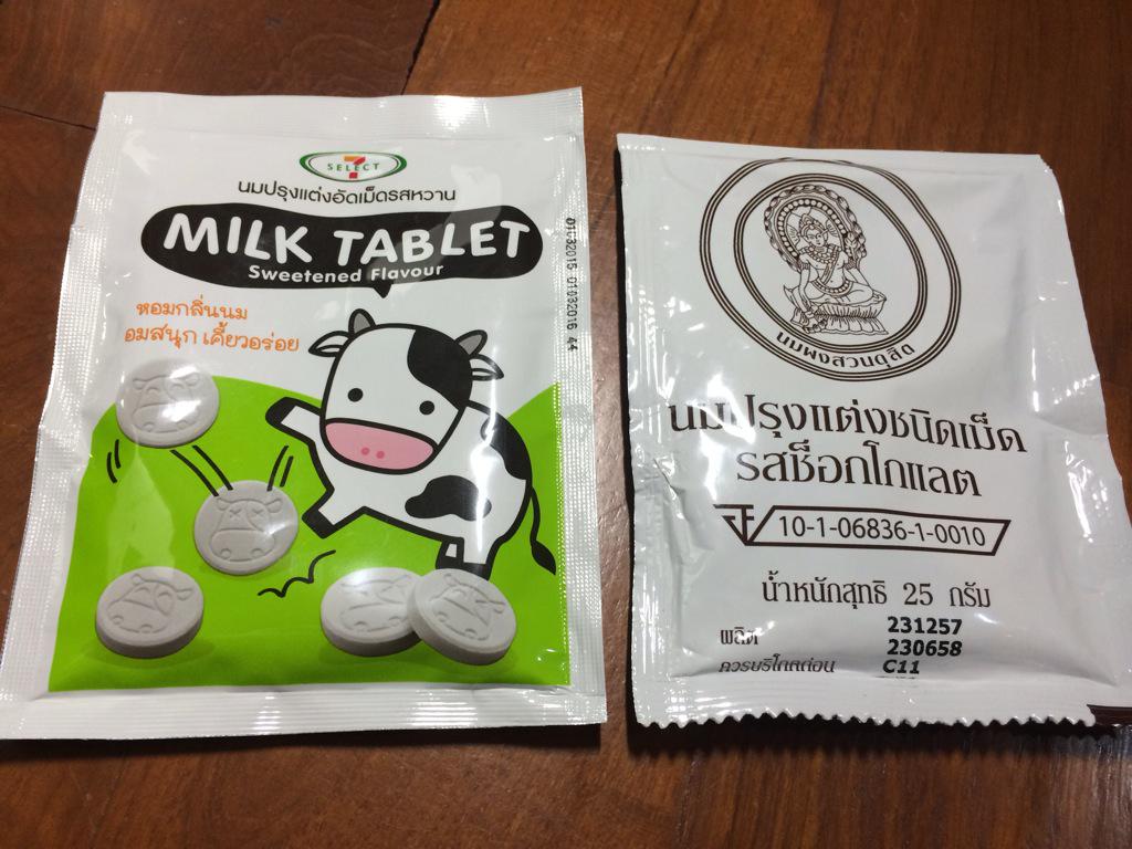 * นมอัดเม็ด 7-select และ นมอัดเม็ดสวนดุสิต (ภาพจากอินเตอร์เน็ต)