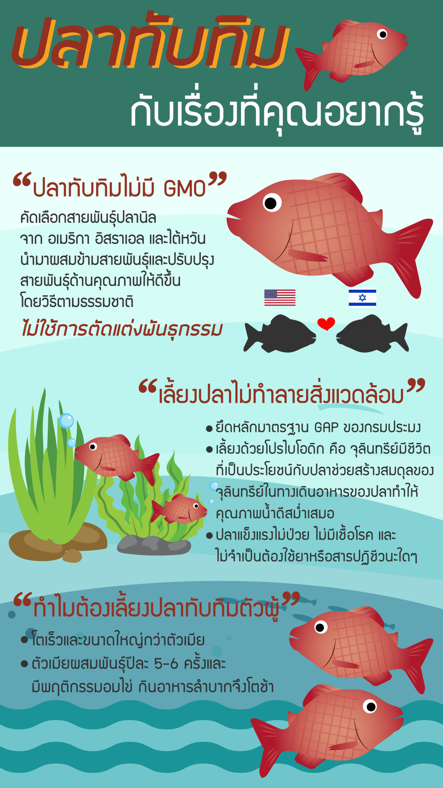 ดังนั้นจงเข้าใจว่าปลาทับทิมไม่ได้เป็นหมัน เพียงแต่ปลาส่วนใหญ่ (95%) เป็นเพศผู้เท่านั้นเอง ข้อมูลนี้พิสูจน์ได้จริงในเชิงวิทยาศาสตร์