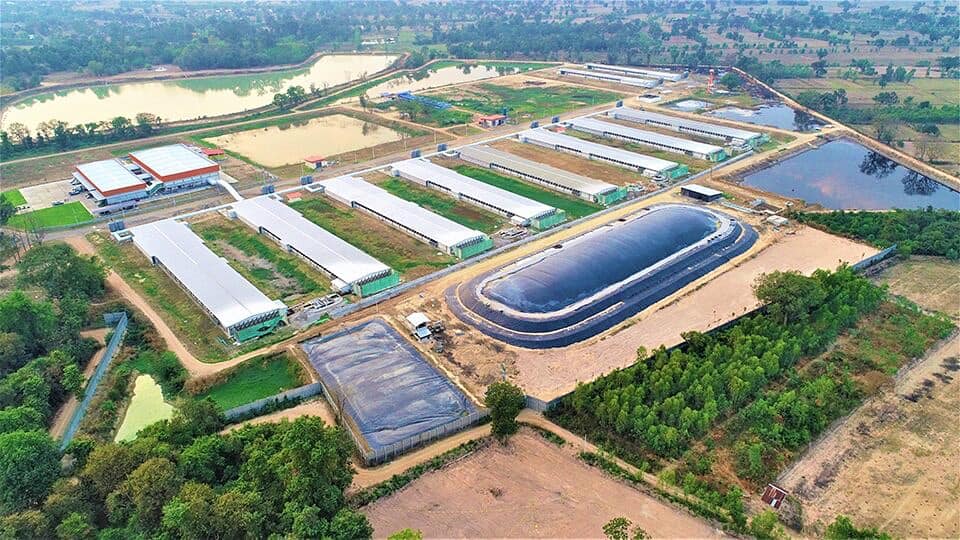จากการที่ CPF พัฒนาการกำจัดของเสียและน้ำเสีย ที่เกิดจากมูลสัตว์ของฟาร์มเลี้ยงสุกรและคอมเพล็กซ์ไก่ไข่ โดยมีการติดตั้งระบบก๊าซชีวภาพในการบำบัดมูลสัตว์และน้ำที่ใช้ในการเลี้ยงสุกรและไก่ไข่ นอกจากจะช่วยลดกลิ่นและการปล่อยก๊าซมีเทนที่จะออกสู่ชั้นบรรยากาศ ซึ่งได้นำก๊าซมีเทนและคาร์บอนไดออกไซด์ที่ได้จากระบบก๊าซชีวภาพไปผลิตกระแสไฟฟ้า และนำกลับมาใช้ในฟาร์มเลี้ยงสุกรและไก่ สามารถทดแทนไฟฟ้าได้ 69 ล้านหน่วย ลดการปล่อยก๊าซเรือนกระจกได้ 490,000 ตันคาร์บอนไดออกไซด์เทียบเท่าต่อปี
