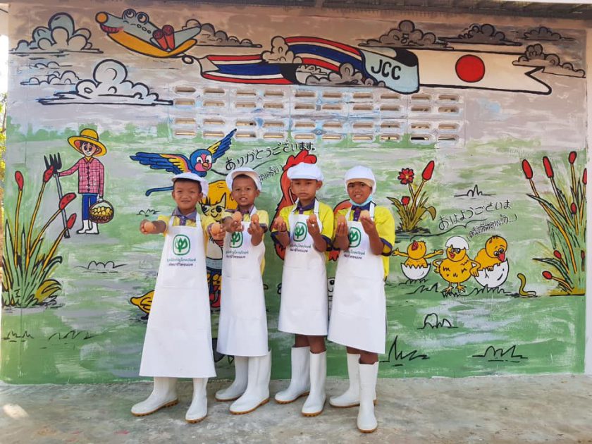 ด้าน คุณเรอิจิ ฟุจิตะ กล่าวว่า เจซีซีตระหนักดีถึงความสำคัญของอาหารมื้อกลางวันเพื่อโภชนาการที่ดีของนักเรียน และมีความยินดีเป็นอย่างยิ่งที่ได้ร่วมสนับสนุนกระทรวงศึกษาธิการ มูลนิธิฯ และ CPF ส่งมอบโครงการเลี้ยงไก่ไข่เพื่ออาหารกลางวันแก่นักเรียน ซึ่งกำหนดปีละ 5 โรงรียน รวมส่งมอบไปแล้วทั้งหมด 132 โรงเรียน เพื่อให้นักเรียนที่อยู่ในพื้นที่ห่างไกลและในถิ่นทุรกันดาร ได้บริโภคอาหารที่มีสารอาหารครบถ้วน และหวังว่านอกจากนักเรียน คุณครู ผู้ปกครอง และชุมชนจะร่วมกันส่งเสริมให้โครงการฯ ดำเนินต่อไปได้อย่างยั่งยืน