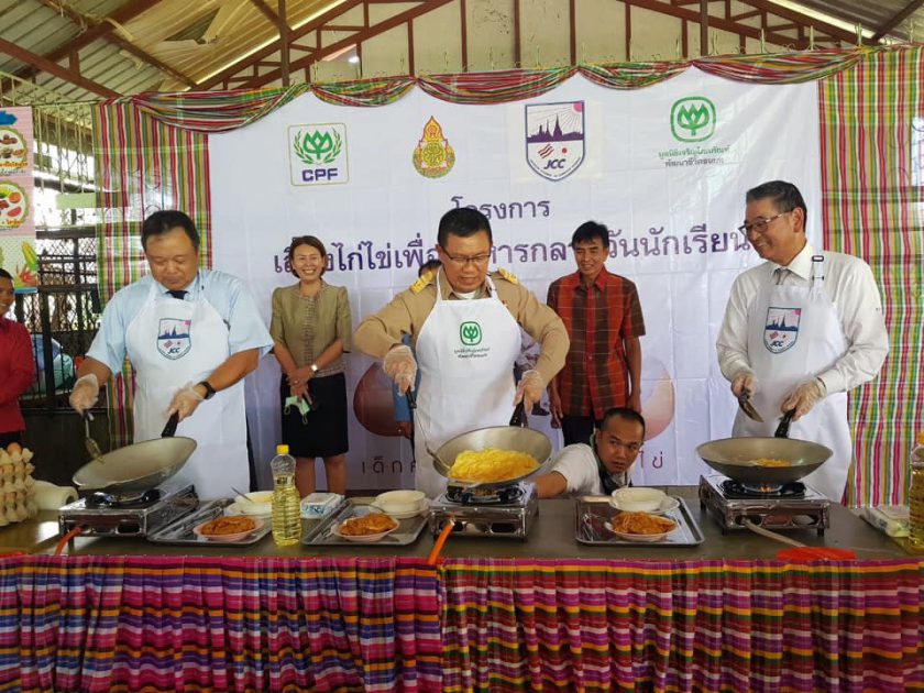 โครงการเลี้ยงไก่ไข่เพืออาหารกลางวันนักเรียน เป็นความร่วมมือของมูลนิธิเจริญโภคภัณฑ์พัฒนาชีวิตชนบท สำนักงานคณะกรรมการการศึกษาขั้นพื้นฐาน (สพฐ.) และ CPF เริ่มดำเนินการมาตั้งแต่ปี 2532 จนถึงปัจจุบันเข้าสู่ปีที่ 31 มีโรงเรียนที่เข้าร่วมโครงการฯ ทั้งสิ้น 855 โรงเรียน โดยมี JCC เป็นภาคีเครือข่ายที่ร่วมสนับสนุนโครงการอย่างต่อเนื่อง ตั้งแต่ปี 2543 เพื่อส่งเสริมให้เด็กและเยาวชนในพื้นที่ทุรกันดาร พื้นที่ห่างไกล ได้บริโภคไข่ไก่ซึ่งเป็นอาหารที่มีโปรตีนคุณภาพ และช่วยแก้ปัญหาทุพโภชนาการในเด็กนักเรียน