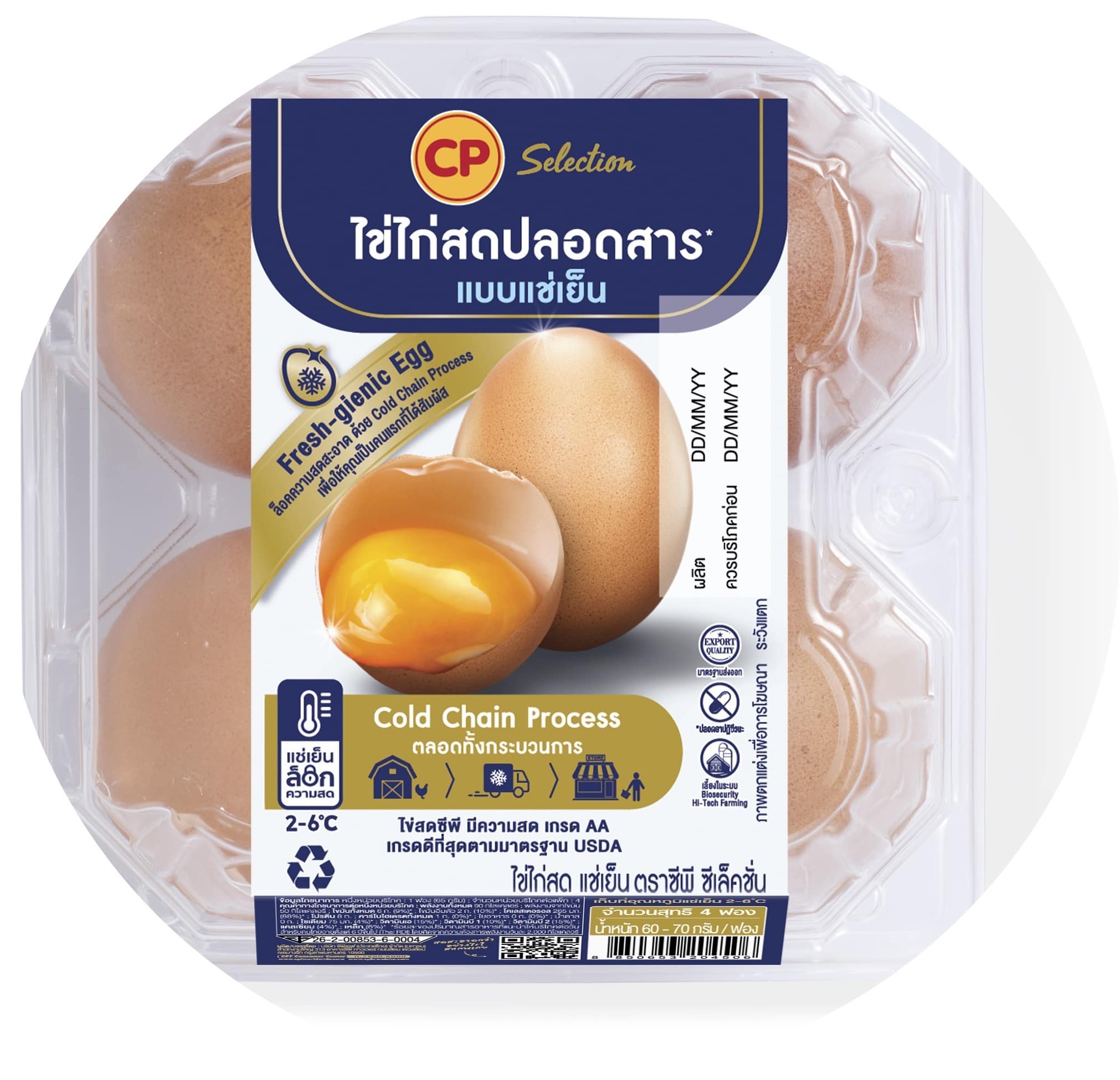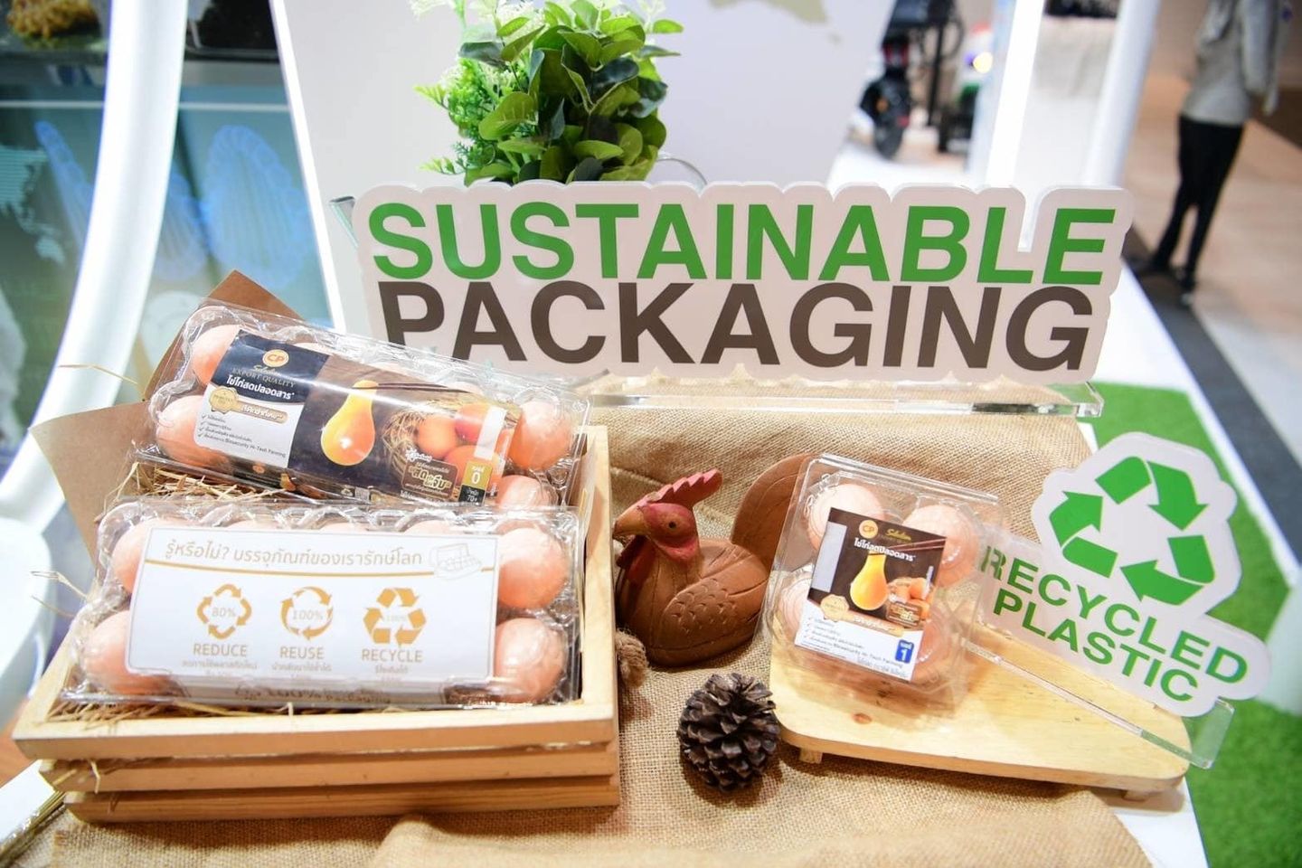 นอกจากนี้ CPF ยังให้ความสำคัญกับการออกแบบและพัฒนาบรรจุภัณฑ์ไข่ไก่สด ด้วยการใช้การใช้วัสดุรีไซเคิลทดแทนการใช้พลาสติกใหม่บางส่วนที่ช่วยลดคาร์บอนฟุตพริ้นท์ได้ และออกแบบบรรจุภัณฑ์ที่ง่ายต่อการรีไซเคิล และสามารถใช้ซ้ำได้ ซึ่งยังคงคุณสมบัติในการเก็บรักษาผลิตภัณฑ์เพื่อส่งมอบไข่ไก่สดที่มีคุณภาพดีสู่ผู้บริโภค