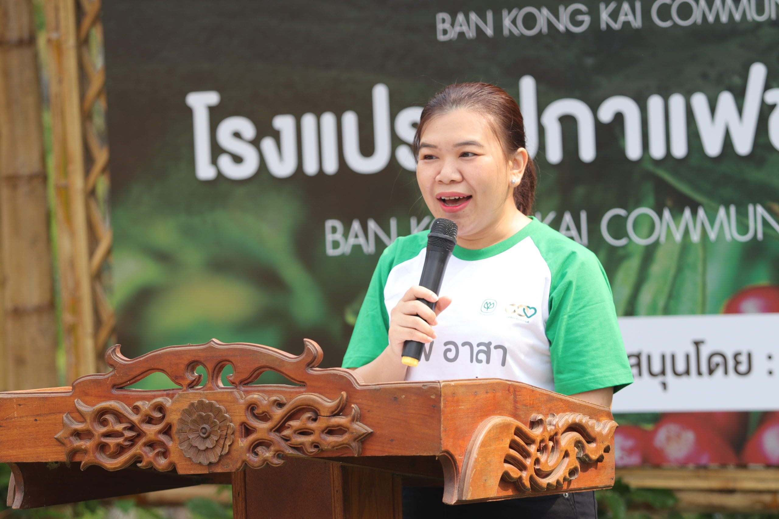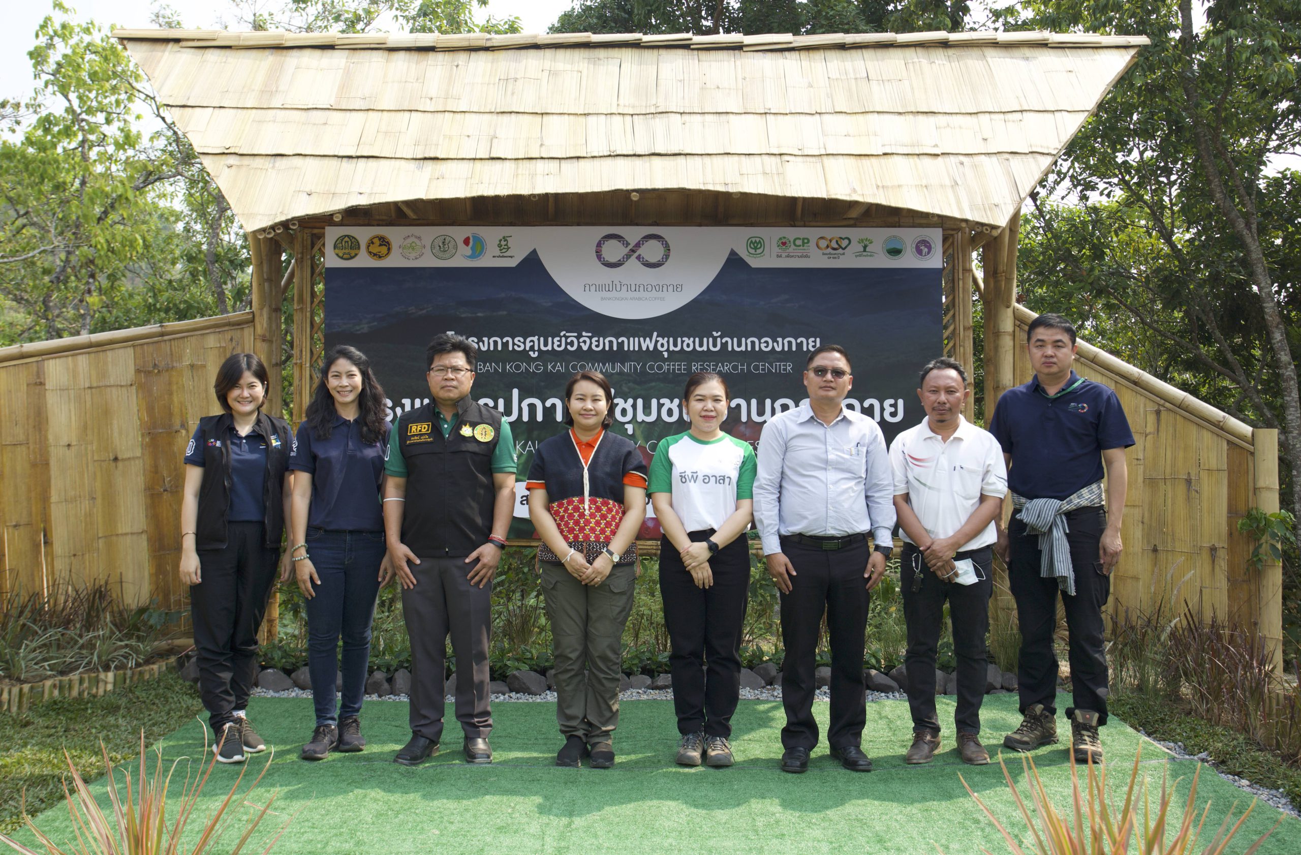 นางสาวพิไลลักษณ์ พิชัยวัตต์ ผู้ช่วยกรรมการผู้จัดการด้านพัฒนาความยั่งยืนภาครัฐและกิจการสัมพันธ์ เครือเจริญโภคภัณฑ์ เปิดเผยว่า เครือซีพีสนับสนุนโรงแปรรูปกาแฟชุมชนบ้านกองกาย ภายใต้โครงการศูนย์วิจัยกาแฟชุมชนบ้านกองกายในครั้งนี้ ผ่านการผนึกกำลังกับภาคีเครือข่ายในภาคส่วนต่างๆ อาทิ สำนักจัดการทรัพยากรป่าไม้ที่ 1 (เชียงใหม่) กรมป่าไม้ อำเภอแม่แจ่ม สำนักงานเกษตรอำเภอเเม่แจ่ม องค์การบริหารส่วนตำบลบ้านทับ สถาบันวิจัยและพัฒนาพื้นที่สูง (องค์การมหาชน) มูลนิธิเพื่อการพัฒนาที่ยั่งยืนภาคเหนือ มหาวิทยาลัยเชียงใหม่ ภาคีเครือข่ายภาคประชาสังคมและชุมชน โดยมีเป้าหมายเพื่อฟื้นฟูสิ่งแวดล้อม พร้อมยกระดับอาชีพชุมชนโดยการปลูกกาแฟฟื้นป่าและปลูกพืชแบบผสมผสาน ภายใต้โมเดลต้นแบบ “กองกาย หมู่บ้านฟื้นฟูป่า 100%” โดยเครือซีพี สนับสนุนการถ่ายทอดองค์ความรู้ เติมเต็มทักษะด้านบริหารจัดการตลอดห่วงโซ่อุปทาน ตั้งแต่ต้นน้ำ กลางน้ำ ปลายน้ำ ตลอดจนยกระดับการพัฒนาสู่ธุรกิจเพื่อสังคม หรือ Social Enterprise ดังนั้น โรงแปรรูปแห่งนี้ จึงเป็นพื้นที่สำคัญในขั้นตอนและกระบวนการแปรรูปที่สามารถรองรับผลผลิตกาแฟคุณภาพ และยกระดับผลผลิตกาแฟให้เกิดมูลค่าสูงสุด ถือเป็นพื้นที่เปิดกว้างในการร่วมแก้ปัญหาด้านสิ่งแวดล้อมของทุกภาคส่วน ส่งเสริมชุมชนให้สามารถอยู่ร่วมกับป่า และสามารถสร้างรายได้ควบคู่กับการเพิ่มพื้นที่สีเขียว ที่จะสามารถลดหมอกควันไฟป่า จากการที่ชุมชนพัฒนาการเกษตรอย่างยั่งยืน ทั้งในมิติด้านเศรษฐกิจ สังคม และสิ่งแวดล้อมไปพร้อมๆกัน โดยชุมชนบ้านกองกาย จะกลายเป็นชุมชนต้นแบบให้กับชุมชนอื่นๆใน อ.แม่แจ่ม และสามารถเป็น “ศูนย์การเรียนรู้ชุมชนบ้านกองกาย (Kong Kai Community Learning Center)” ที่จะพร้อมเป็นพื้นที่แห่งการเรียนรู้ของชุมชน จากความร่วมมือระหว่างคณะเกษตรศาสตร์ มหาวิทยาลัยเชียงใหม่ และเครือซีพี เพื่อสร้างชุมชนเข้มแข็งอย่างยั่งยืน