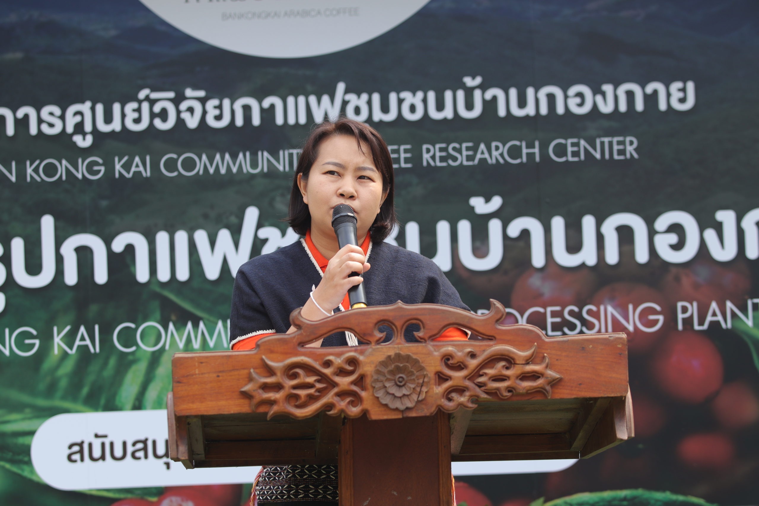 ทางด้าน นางสาวพัทธนันท์ พิทาคำ นายอำเภอแม่แจ่ม กล่าวว่า รู้สึกยินดีที่เครือเจริญโภคภัณฑ์ สนับสนุนโรงแปรรูปกาแฟให้กับชุมชนบ้านกองกายในวันนี้ ซึ่งถือเป็นตัวแปรสำคัญในการขับเคลื่อนการพัฒนาพื้นที่และพัฒนาคุณภาพชีวิตให้กับประชาชนบ้านกองกาย ต.บ้านทับ อ.แม่แจ่ม จ.เชียงใหม่ โดยผนึกกำลังร่วมกับหน่วยงานต่างๆ ทั้งภาครัฐ ภาคเอกชน ภาคประชาสังคม และชุมชนบ้านกองกาย ซึ่งโครงการที่ขับเคลื่อนดังกล่าวฯ ถือว่าเป็นโครงการที่ตอบโจทย์ในการพัฒนาชุมชนอย่างยั่งยืน เนื่องจากชาวบ้านมีอาชีพทำกินในพื้นที่ป่า ซึ่งที่ผ่านมาชาวบ้านมีความยากลำบากในการทำการเกษตรจากปัญหาไม่มีแหล่งน้ำ เพื่อมาสนับสนุนการปลูกพืชแบบผสมผสานทดแทนการปลูกพืชเชิงเดี่ยว อีกทั้ง อ.แม่แจ่ม ถือเป็นพื้นที่ป่าต้นน้ำสำคัญที่กว้างใหญ่เป็นอันดับที่ 1 ของ จ.เชียงใหม่ และเป็นอันดับที่ 5 ของประเทศไทย และความสำเร็จในวันนี้ เกิดได้จากการสนับสนุนชุมชนในการพัฒนาแหล่งน้ำในการปลูกกาแฟที่มีประสิทธิภาพ การบริหารจัดการตลอดห่วงโซ่อุปทาน รวมถึงการนำองค์ความรู้ “ศาสตร์พระราชา” ในการจัดการพื้นที่ป่าตามแนวทาง “วนเกษตร” หรือ “เกษตรทฤษฎีใหม่” โดยหวังเป็นอย่างยิ่งว่า โรงแปรรูปกาแฟชุมชนบ้านกองกาย จะเป็นหนึ่งในกลไกขับเคลื่อนพัฒนาและยกระดับคุณภาพชีวิตเกษตรกรในชุมชน เพื่อเป็นโมเดลต้นแบบที่สามารถขยายไปพัฒนาในทุกพื้นที่ของ อ.แม่แจ่ม ในการฟื้นฟูทรัพยากรธรรมชาติ ลดปัญหาหมอกควันไฟป่า และลดการใช้พื้นที่ปลูกพืชเชิงเดี่ยว นำไปสู่การทำการเกษตรแบบผสมผสานอย่างยั่งยืน