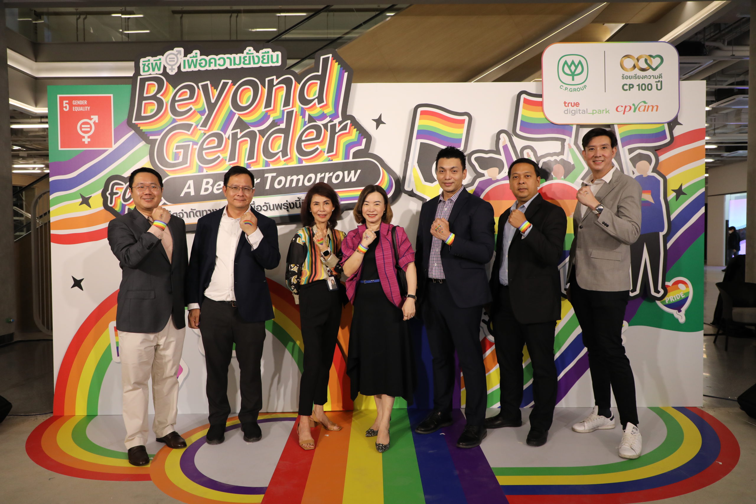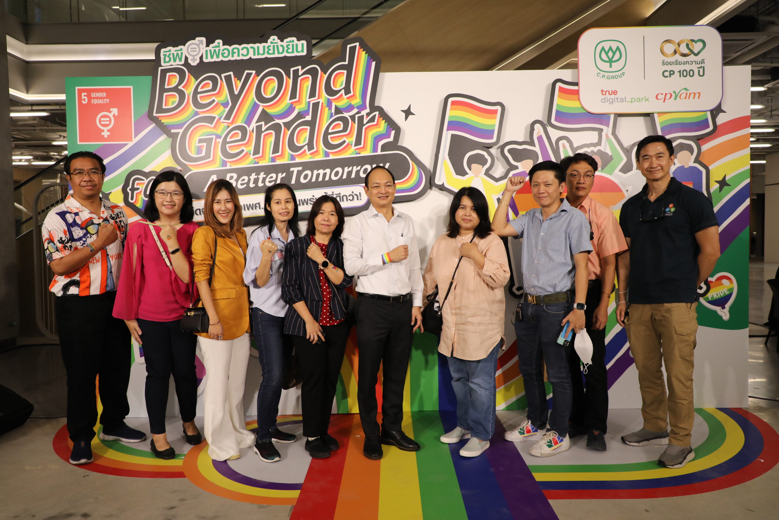 โอกาสนี้ ได้รับเกียรติจาก ดร.ธีระพล ถนอมศักดิ์ยุทธ ประธานคณะผู้บริหารยุทธศาสตร์ข้อมูลและการสื่อสาร เครือเจริญโภคภัณฑ์ เป็นผู้กล่าวเปิดงาน พร้อมด้วยนางสาวพิมลรัตน์ รีพัฒนาวิจิตรกุล ประธานผู้บริหารทรัพยากรบุคคล เครือเจริญโภคภัณฑ์ นายวัชราวิทย์ วราภัทรนนญ์ ผู้จัดการฝ่ายสิทธิมนุษยชนและส่งเสริมความเท่าเทียม สมาคมฟ้าสีรุ้งแห่งประเทศไทย นายธนษิต จตุรภุช ศิลปินและตัวแทนกลุ่ม LGBTQ+ รวมทั้งนายกฤษฎิ์ คงธนดารากร รองกรรมการผู้จัดการ ด้านสรรหาและคัดเลือกทรัพยากรบุคคล และ ประธานชมรม LGBTQ+ บมจ.เจริญโภคภัณฑ์อาหาร (ซีพีเอฟ) ร่วมพูดคุยและแชร์มุมมองในประเด็น “Beyond Gender For A Better Tomorrow ข้ามขีดจำกัดทางเพศ…เพื่อวันพรุ่งนี้ที่ดีกว่า!” โดยมีคณะผู้บริหาร พนักงานเครือซีพี และผู้สนใจเข้าร่วมงานอย่างคับคั่ง พร้อมร่วมแสดงพลังเชิงสัญลักษณ์ส่งต่อธงสีรุ้งเพื่อสร้างความเท่าเทียม ณ ทรู ดิจิทัล พาร์ค (ฝั่งเวสต์)