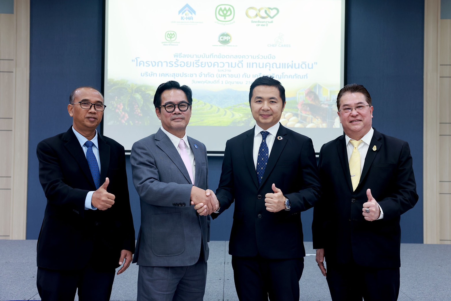 “บมจ.เคหะสุขประชา” ผนึก “เครือเจริญโภคภัณฑ์” ร่วมลงนามบันทึกข้อตกลง “โครงการร้อยเรียงความดี แทนคุณแผ่นดิน” เพื่อร่วมกันพัฒนาพื้นที่โครงการบ้านเช่า “เคหะสุขประชา” ที่จัดให้เป็นที่อยู่อาศัย พร้อมส่งเสริมอาชีพ ตลอดจนดูแลคุณภาพชีวิตสำหรับครัวเรือนเปราะบาง นำโดย เครือเจริญโภคภัณฑ์ บริษัท เจริญโภคภัณฑ์โปรดิ๊วส จำกัด และ บริษัท เชฟแคร์ส โปรเจกต์ จำกัด โดยมี คุณพิษณุพร อุทกภาชน์ ประธานเจ้าหน้าที่บริหาร บริษัท เคหะสุขประชา จำกัด (มหาชน) คุณจอมกิตติ ศิริกุล รองกรรมการผู้จัดการใหญ่อาวุโส ด้านพัฒนาความยั่งยืนภาครัฐเเละกิจการสัมพันธ์ เครือเจริญโภคภัณฑ์ และกรรมการและเลขาธิการ มูลนิธิเจริญโภคภัณฑ์พัฒนาชีวิตชนบท ดร.เทอดศักดิ์ สุวรรณเทพ รองกรรมการผู้จัดการอาวุโส บริษัท เจริญโภคภัณฑ์โปรดิ๊วส จำกัด และดร. ภัทรพงษ์ พรรณศิริ ผู้ช่วยอาวุโส ประธานกรรมการบริหารเครือเจริญโภคภัณฑ์ และหัวหน้าสายงานกลยุทธ์ ตัวแทน บริษัท เชฟแคร์ส โปรเจกต์ จำกัด ร่วมลงนามบันทึกข้อตกลงร่วมกัน