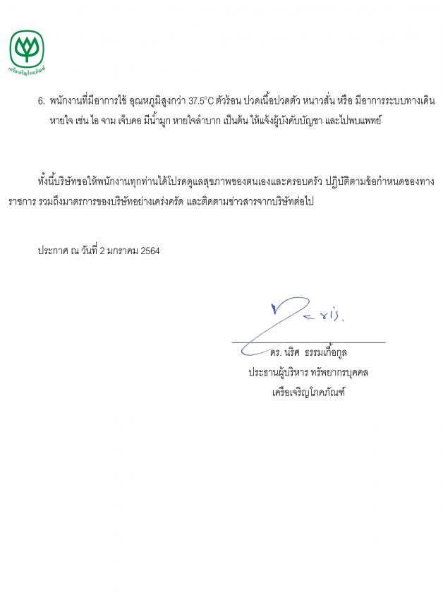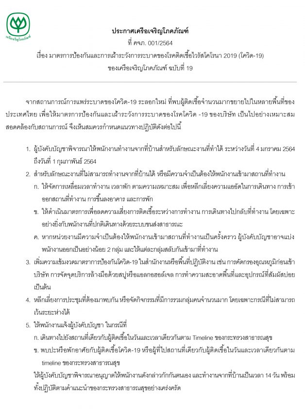 ประกาศเครือฯ เรื่อง มาตรการป้องกันและเฝ้าระวังการระบาดของโควิด-19 ฉบับที่ 19 1 มกราคม 256413 มกราคม 2021SystemNews, กิจกรรมเพื่อสังคม, มาตรการป้องกันcovid-19 Post Views: 2,799