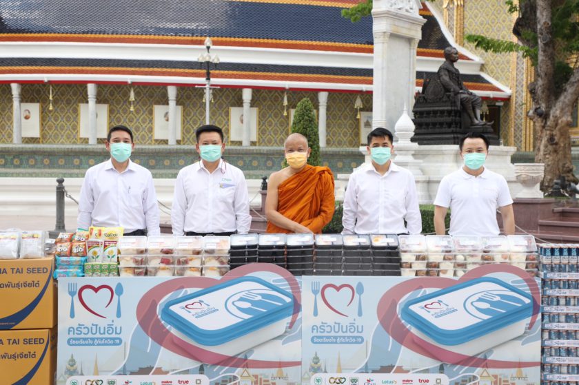โครงการ “ครัวปันอิ่ม ซีพีร้อยเรียงใจ สู้ภัยโควิด-19” สนองพระดำริสมเด็จพระสังฆราช สกลมหาสังฆปริณายก มอบข้าวกล่องที่วัดราชบพิธสถิตมหาสีมารามราชวรวิหาร และอีก 15 วัดในกรุงเทพ ฯ เพื่อแจกจ่ายแก่พี่น้องชุมชนโดยรอบ จำนวน 15,000 กล่อง หน้ากากอนามัยซีพี 50,000 ชิ้น และเมล็ดพันธุ์พืช จำนวน 15,000 ถุง โดยมีคณะผู้บริหารเครือซีพี นำโดย ดร.ธีระพล ถนอมศักดิ์ยุทธ ประธานคณะผู้บริหาร ยุทธศาสตร์ข้อมูลและการสื่อสาร เครือฯ คุณภูมิชัย ตรัยดลานนท์ กรรมการผู้จัดการ บริษัท ซีพี โซเชียลอิมแพคท์ จำกัด ผู้ผลิตหน้ากากอนามัยซีพี คุณยงยุทธ พฤกษ์มหาดำรง รองกรรมการผู้จัดการอาวุโส กลุ่มธุรกิจข้าวตราฉัตร บริษัท ซี.พี.อินเตอร์เทรด จำกัด คุณประวินทร์ คุโรวาท ประธานบริหารด้านการเงินและบริหารกลาง บริษัท เจียไต๋ จำกัด เป็นผู้มอบ ณ วัดราชบพิธสถิตมหาสีมารามราชวรวิหาร เขตพระนคร กรุงเทพฯ