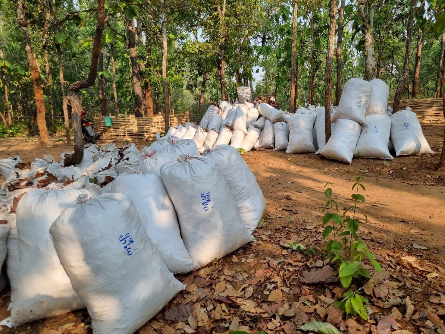 นางเฉลิมชัย โปธา ผู้ใหญ่บ้าน บ้านป่าไผ่ หมู่ 3 ต.เมืองแหง อ.เวียงแหง จ.เชียงใหม่ เล่าว่า หมู่บ้านเราดูแลป่าชุมชนกว่า 400 ไร่ ซึ่งที่ผ่านมา หมู่บ้านก็ร่วมกันช่วยเก็บใบไม้มามุงหลังคาบ้าน แต่ต้องเป็นใบไม้บางชนิดที่คัดแล้วว่าสมบูรณ์ จึงมีจำนวนน้อย ในป่าชุมชนมีใบไม้สะสมมาก ก็จะเป็นปัญหาไฟป่าอยู่ตลอด ยิ่งมีใบไม้มาก ไฟป่าก็ยิ่งรุนแรงมาก เพราะก่อนหน้านี้ก็ไม่รู้จะนำใบไม้แห้งไปใช้ประโยชน์อะไร พอมีโครงการ “ป่าปลอดเผา” ก็ทำให้คนในชุมชนให้ความสนใจและมีส่วนร่วมเก็บใบไม้ ลดเชื้อเพลิงได้ แล้วการนำใบไม้ไปทำปุ๋ย ชาวบ้านก็ให้ความสนใจมาก เพราะหมู่บ้านเรากำลังจะทำกลุ่มเกษตรอินทรีย์อยู่แล้ว ต้องทำเป็นวงจรแบบนี้ถึงจะไปได้ ตอนนี้เฉพาะบ้านเดียว เก็บใบไม้แห้งได้กว่า 3,000 กิโลกรัม