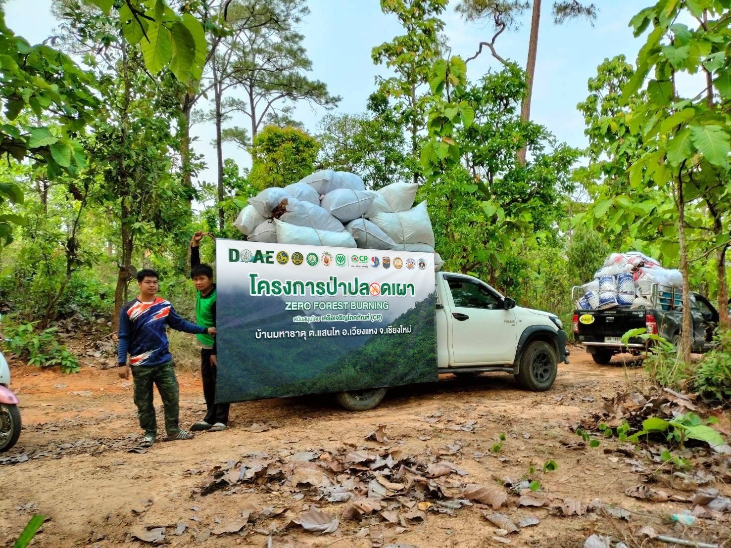 เครือเจริญโภคภัณฑ์ เป็นภาคเอกชนที่เข้ามาสนับสนุนการลดปัญหาหมอกควันไฟป่า และฝุ่น PM 2.5 ในภาคเหนือ โดยเฉพาะ จ.เชียงใหม่ สนับสนุนโครงการ “ป่าปลอดเผา” โดยนายนนท์ นาคะเสถียร ผู้จัดการทั่วไปด้านพัฒนาความยั่งยืนภาครัฐและกิจการสัมพันธ์ เครือเจริญโภคภัณฑ์ เผยว่า การนำใบไม้แห้งในป่าชุมชนที่ชาวบ้านร่วมกันเก็บมาผ่านกระบวนการแปรรูปเป็นปุ๋ยอินทรีย์ ได้รับการสนับสนุนองค์ความรู้ และ ความร่วมมือ จากมหาวิทยาลัยแม่โจ้ มีการตั้งจุดรับใบไม้จำนวน 6 จุด จาก 6 หมู่บ้าน ได้แก่ บ้านสามปู บ้านมหาธาตุ บ้านปางป๋อ บ้านแม่หาด บ้านป่าไผ่ และบ้านห้วยหก ในปี 2567 นี้ มีเป้าหมายใบไม้แห้ง จำนวน 1,000 ตัน โครงการดังกล่าวฯ จึงเป็นส่วนหนึ่งในการช่วยลดเชื้อเพลิงธรรมชาติในพื้นที่ป่าชุมชน อ.เวียงแหง กว่า 7,660 ไร่ ลดการเผาใบไม้เพื่อหาของป่า ตลอดจนปลูกจิตสำนึกให้ชุมชนมีส่วนร่วมในการอนุรักษ์สิ่งแวดล้อม ใช้ทรัพยากรอย่างคุ้มค่า ไปควบคู่กับสร้างรายได้ให้ชุมชนไปพร้อมกัน