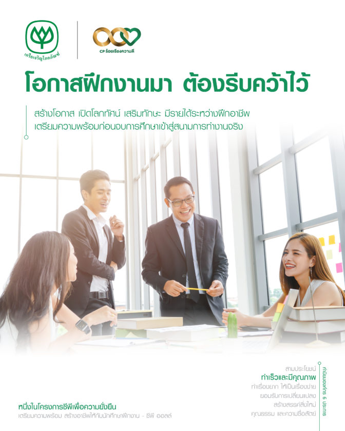 โครงการ เตรียมความพร้อม สร้างอาชีพให้กับนักศึกษาฝึกงาน ช่วยให้นักศึกษามีทักษะกล้าในการนำเสนอ และมีความคิดต่อยอด สร้างนวัตกรรมใหม่ๆ เพื่อพัฒนากระบวนการทำงาน และเพิ่มพูนความรู้เกี่ยวกับเทคโนโลยีสมัยใหม่ โดยมีจำนวนนักศึกษาที่เข้าร่วมโครงการ จำนวนทั้งสิ้น 37,257 คน รายได้ที่นักศึกษาได้รับเพื่อแบ่งเบาภาระครอบครัว จำนวนทั้งสิ้น 4,917,924,000 บาท และจำนวนนักศึกษาที่กลับเข้ามาทำงานกับทางบริษัท จำนวนทั้งสิ้น 1,204 คน