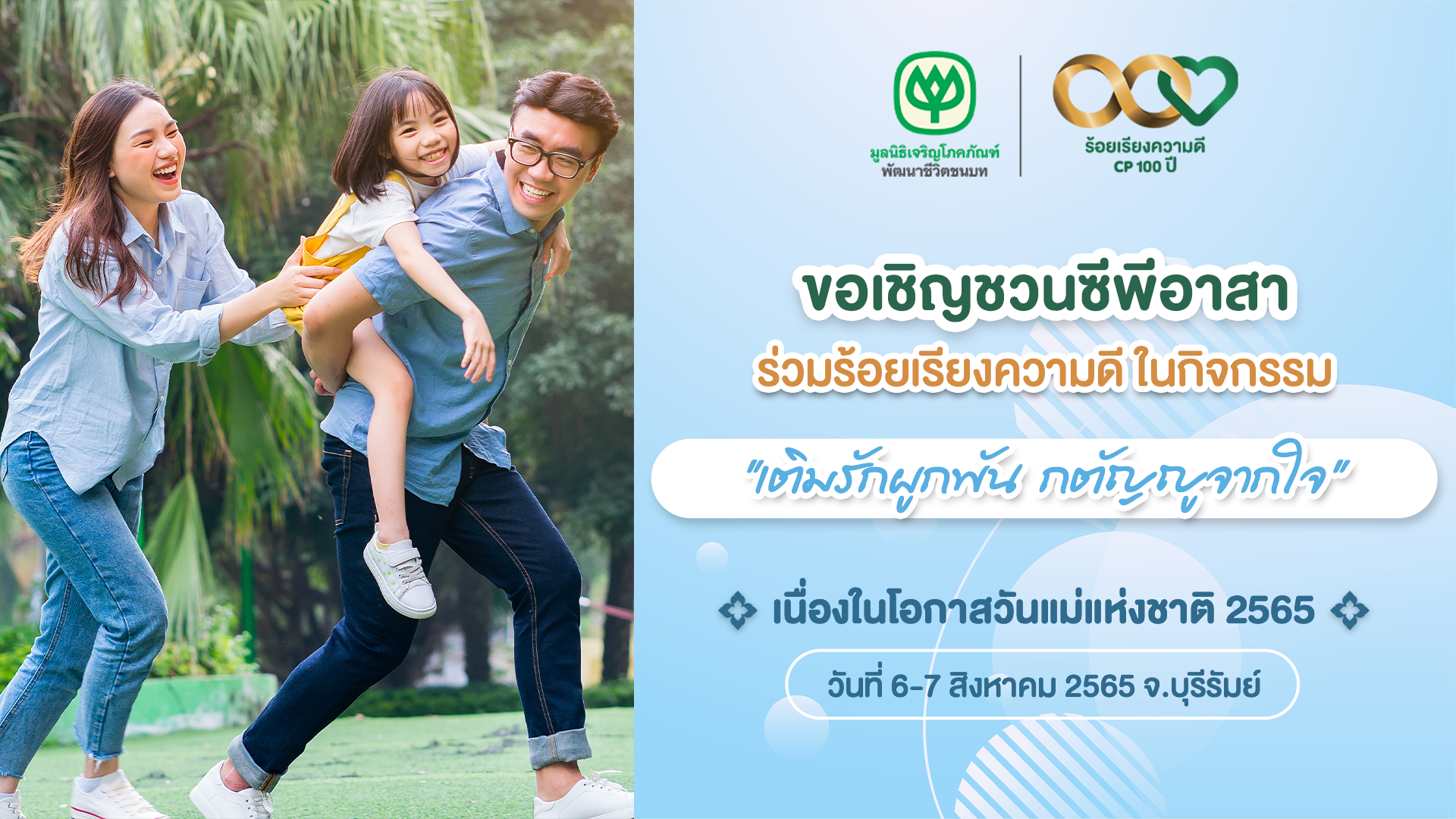 มาร่วมกันมอบความรักและส่งต่อกำลังใจให้เด็กๆในโครงการครอบครัวอุปการะฯ มูลนิธิเจริญโภคภัณฑ์พัฒนาชีวิตชนบท ได้