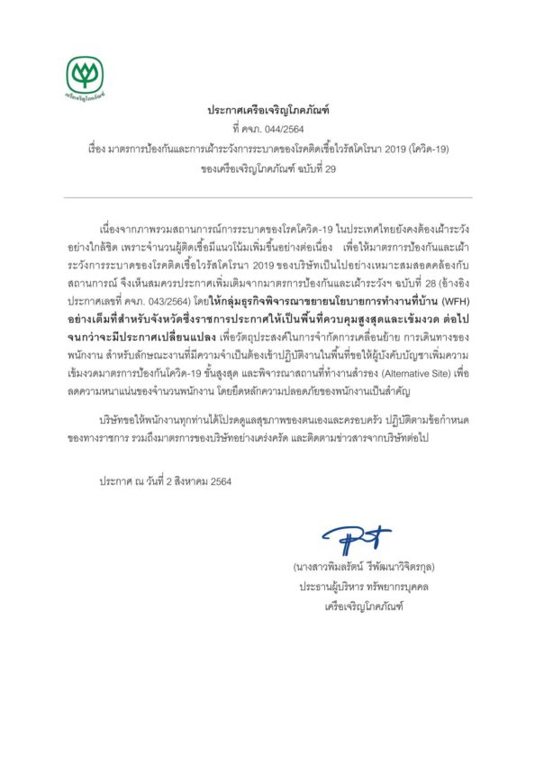 มาตรการป้องกันและการเฝ้าระวังการระบาดของโรคติดเชื้อไวรัสโคโรนา 2019 (โควิด-19) ของเครือเจริญโภคภัณฑ์ ฉบับที่ 29 3 สิงหาคม 25643 สิงหาคม 2021SystemNews, กิจกรรมเพื่อสังคม Post Views: 1,272