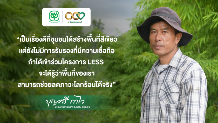 นอกจากนี้คุณบุญสี กาไว ผู้ใหญ่บ้านแม่วาก อ.แม่แจ่ม จ.เชียงใหม่ เผยว่า การร่วมงานกับเครือฯ เป็นแนวทางที่ดีที่จะช่วยชุมชนเรื่องอาชีพและสร้างรายได้ ตั้งเป้าวางแผนการจัดการภายในชุมชนอย่างเป็นระบบให้มากขึ้นในอนาคต “เป็นเรื่องดีที่ชุมชนได้สร้างพื้นที่สีเขียว แต่ยังไม่มีการรับรองที่มีความเชื่อถือ ถ้าได้เข้าร่วมโครงการ LESS จะได้รู้ว่าพื้นที่ของเราสามารถช่วยลดภาวะโลกร้อนได้จริง” แสดงให้เห็นถึงความมุ่งมั่นในการขับเคลื่อนด้านสิ่งแวดล้อมอย่างยั่งยืนของชุมชน