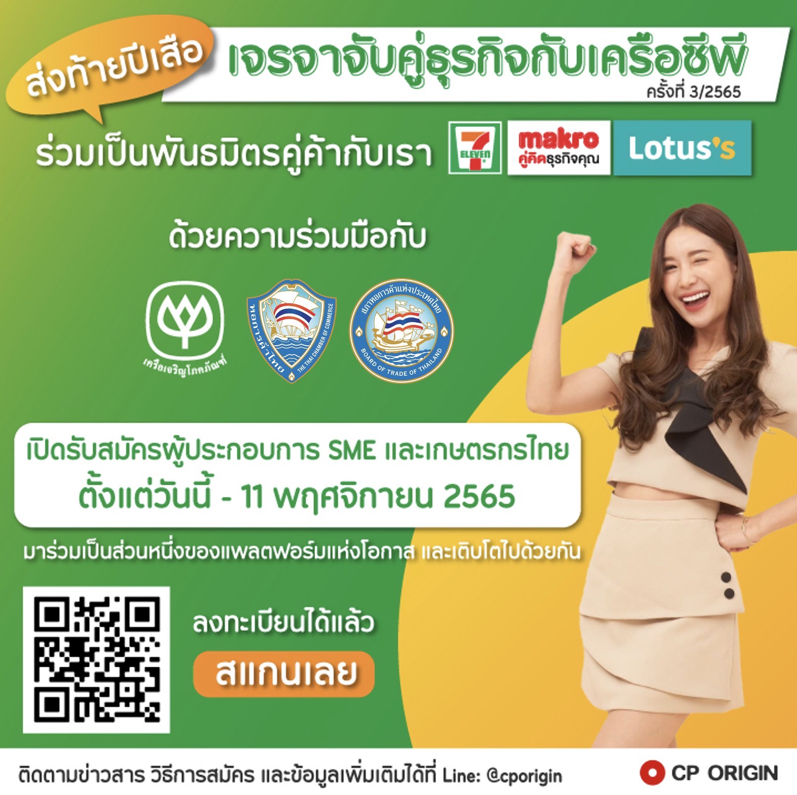 เครือเจริญโภคภัณฑ์ ร่วมกับ หอการค้าไทย และสภาหอการค้าแห่งประเทศไทย เปิดรับสมัครผู้ประกอบการ SME สร้างโอกาสขายสินค้าในห้างค้าปลีกสมัยใหม่