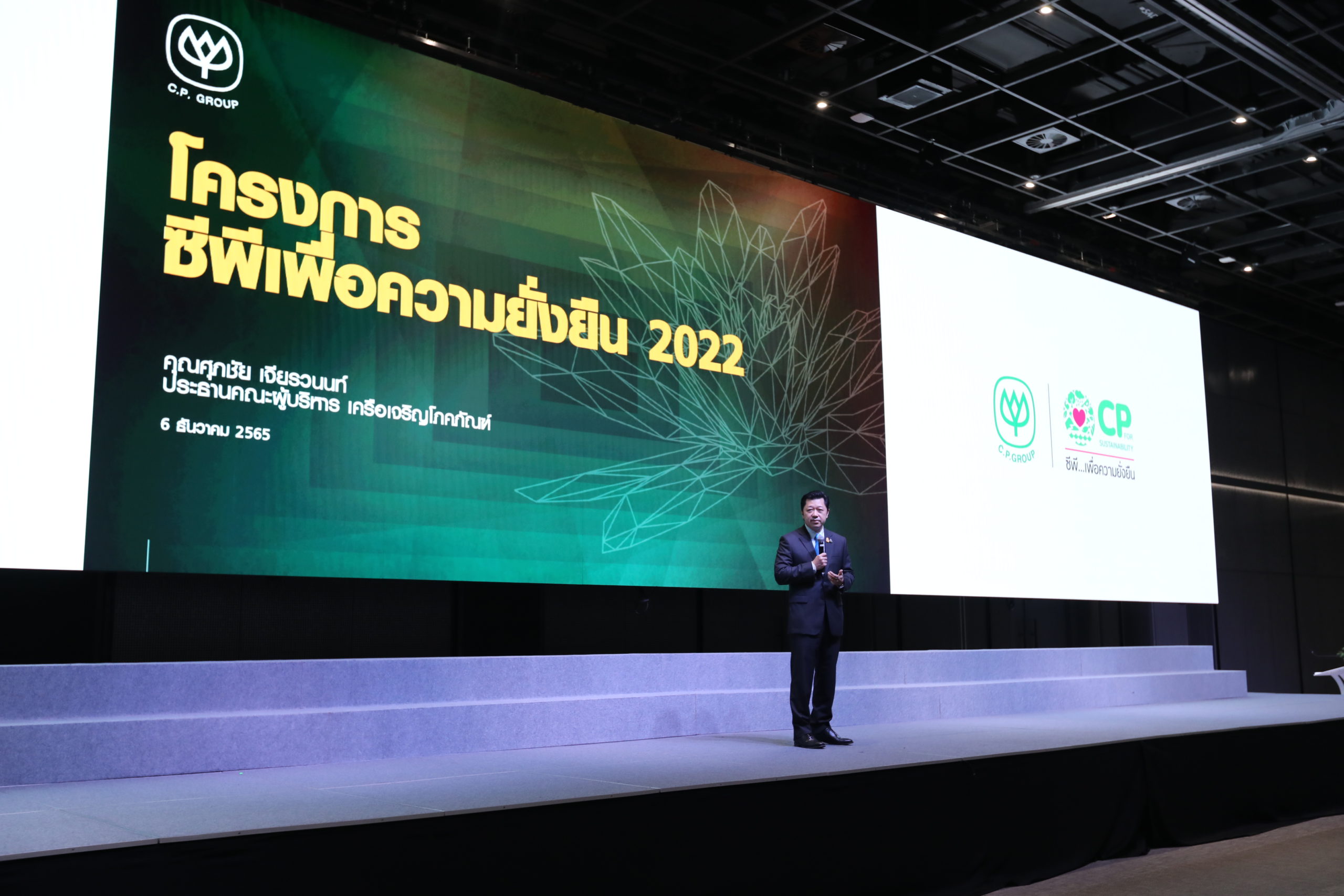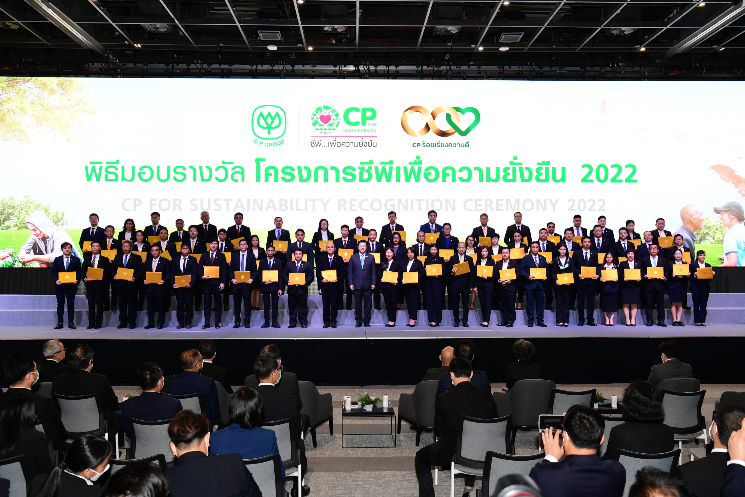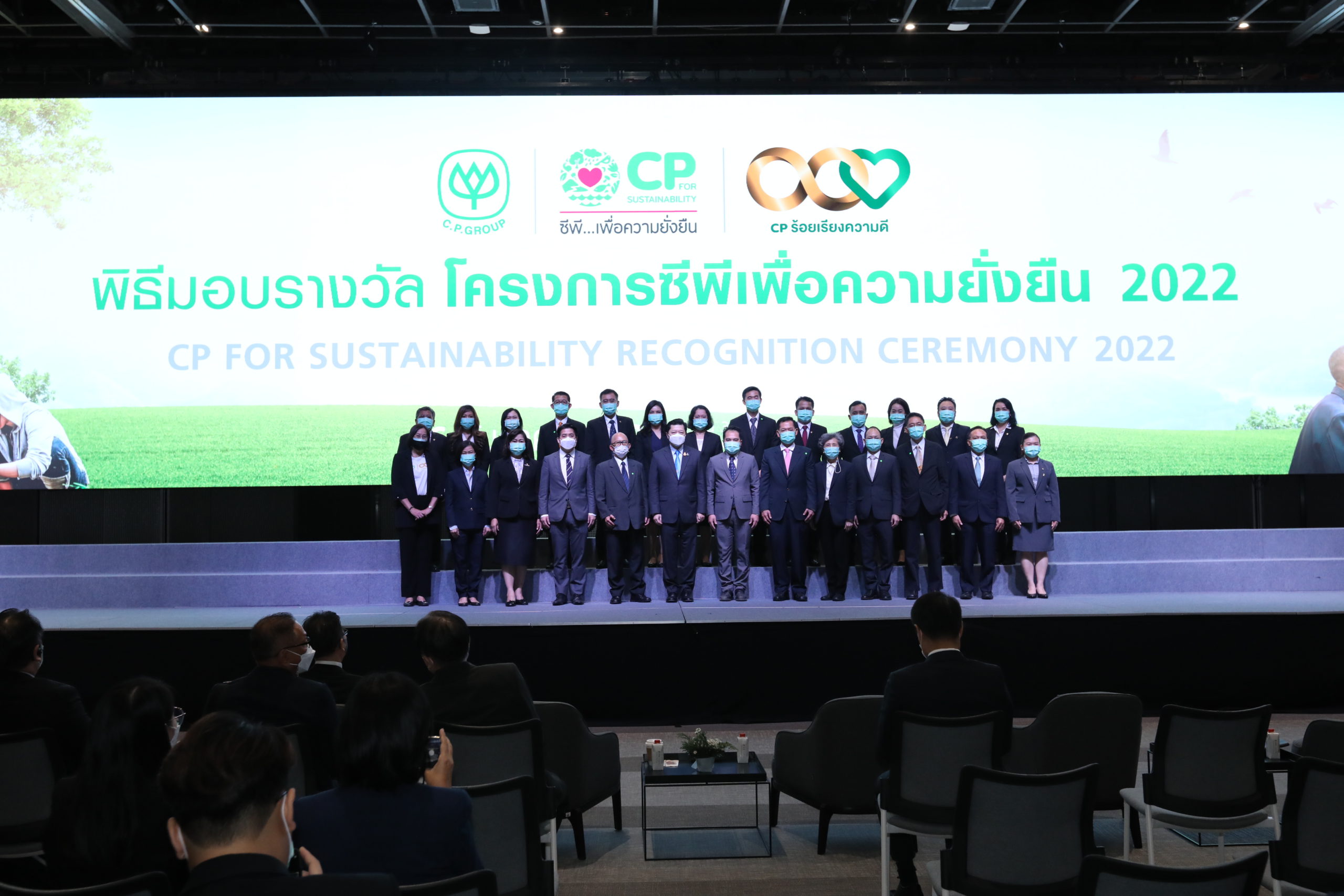 6 ธ.ค. 2565 – เครือซีพี จัดพิธีมอบรางวัล “โครงการซี.พี.เพื่อความยั่งยืน 2022 ” เพื่อยกย่องเชิดชูผู้บริหารและพนักงานเครือซีพีทั่วโลกที่ได้ร่วมกันร้อยเรียงความดี ทำโครงการต้นแบบด้านความยั่งยืน โดยมีโครงการจากกลุ่มธุรกิจของเครือฯ ทั่วโลกได้รับรางวัลรวม 122 โครงการ โดยได้รับเกียรติจากคุณศุภชัย เจียรวนนท์ ประธานคณะผู้บริหาร เครือเจริญโภคภัณฑ์(ซีพี)เป็นประธานมอบรางวัล พร้อมด้วยคุณพัชรี คงตระกูลเทียน ผู้แทนคณะกรรมการอำนวยการโครงการซี.พี.เพื่อความยั่งยืน คุณบุญชัย โอภาสเอี่ยมลิขิต ประธานธุรกิจ-สหรัฐอเมริกา เครือเจริญโภคภัณฑ์ คุณประสิทธิ์ ดำรงชิตานนท์ รองประธานกรรมการ กลุ่มธุรกิจพืชครบวงจร ข้าว ขนส่งและบริการ คุณจิระศักดิ์ เสงี่ยมกิตติกุล ประธานคณะผู้บริหาร บริษัท เจริญโภคภัณฑ์วิศวกรรม จำกัด และดร.ธีระพล ถนอมศักดิ์ยุทธ ประธานคณะผู้บริหารด้านยุทธศาสตร์ข้อมูลและการสื่อสาร เครือเจริญโภคภัณฑ์ พร้อมด้วยผู้แทนคณะกรรมการกลั่นกรองโครงการจากภายนอก ได้แก่ ดร.เพิ่มศักดิ์ มกราภิรมย์ ที่ปรึกษาศูนย์ศึกษาและพัฒนาสันติวิธี มหาวิทยาลัยมหิดล รวมทั้งผู้บริหารและพนักงานเครือซีพี เข้าร่วมงานอย่างคับคั่ง ณ ห้องแกรนด์ฮอลล์ ทรู ดิจิทัล พาร์ค เวสต์ กรุงเทพฯ