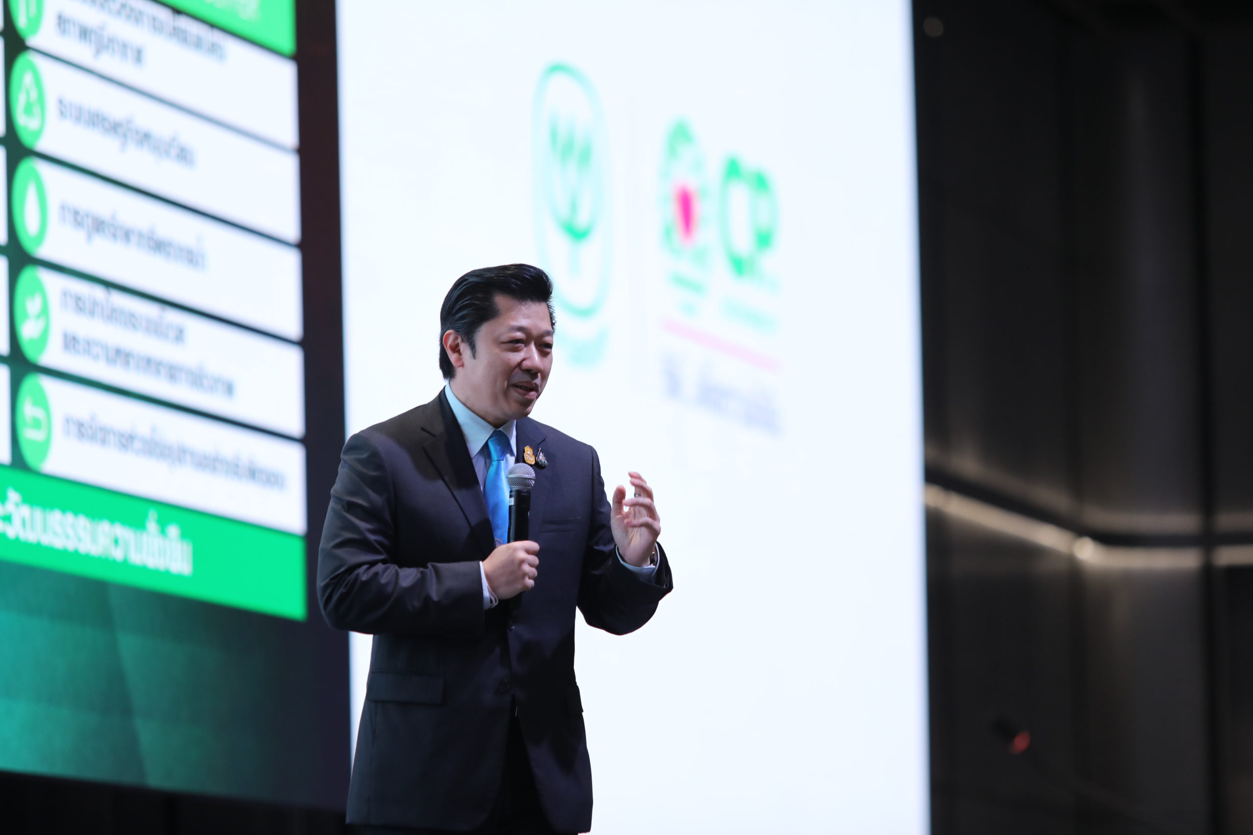 คุณศุภชัย ยังได้ยกตัวอย่าง 3 เป้าหมายท้าทายที่เครือฯ ต้องทำสำเร็จภายในในปี 2030 คือ เป้าหมายการปรับตัวต่อการเปลี่ยนแปลงสภาพภูมิอากาศ (Climate Change) ที่มีแนวโน้มของความรุนแรงสูงขึ้นถือเป็นเรื่องเร่งด่วนที่ผู้บริหารและพนักงานในกลุ่มธุรกิจของเครือฯ ทั่วโลกต้องวางแนวทางและร่วมปฏิบัติติในการแก้วิกฤตโลกร้อน เครือฯ ได้ประกาศเป้าหมายสู่การเป็นองค์กรคาร์บอนต่ำ หรือ Carbon Neutral ภายในปี 2030 โดยมีแผนลดก๊าซเรือนกระจก (Greenhouse Gas:GHG) ตลอดห่วงโซ่อุปทานลงทุกปี ปัจจุบันลดการปล่อยก๊าซเรือนกระจกได้แล้ว 6.56 ล้านตันใน scope 1 และ scope2 ซึ่งเป็นการลดการปล่อยก๊าซเรือนกระจกภายในองค์กร ขณะเดียวกันก็เริ่มดำเนินการใน scope 3 ซึ่งต้องได้รับความร่วมมือจากคู่ค้าในการหาสินค้าคาร์บอนต่ำ และการร่วมมือกับคนในชุมชน