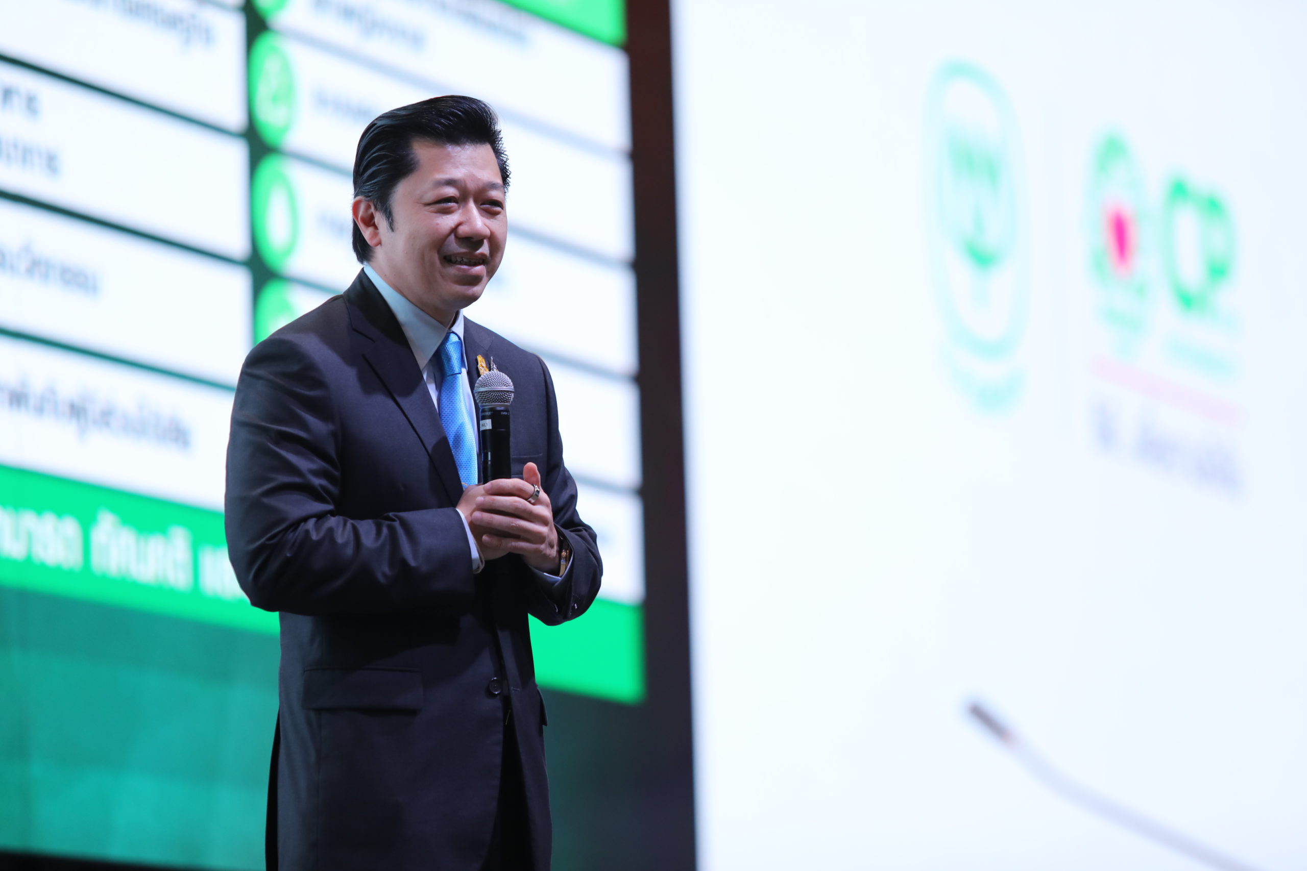 ซีอีโอเครือ ยังได้กล่าวว่า ภาคธุรกิจต้องให้ความสำคัญด้านความยั่งยืน โดยต้องทำให้เป็นเนื้อเดียวกันเพื่อให้ทันต่อการเปลี่ยนแปลงของโลก โดยต้องมองทั้งภาพรวม คือ มองต้นทุนด้านสังคมที่เป็นความท้าทายและปัญหา เพื่อหาแนวทางรับมือและแก้ไข นอกจากนี้ ยังได้กล่าวถึง 6 ความท้ายทายที่โลกจะต้องเผชิญในปี 2023-2035 ประกอบด้วย 1.ความเหลื่อมล้ำ 2.การเปลี่ยนสู่ดิจิทัลและพลังงาน 3.การเปลี่ยนแปลงสภาพภูมิอากาศ 4.ภาวะเงินเฟ้อรุนแรง 5.โลก 2 ขั้วอำนาจ และ6.การเผชิญในเรื่องสุขภาพและโรคระบาดใหม่ที่อาจเกิดขึ้นและส่งผลกระทบต่อโลก ทั้งนี้ การทำธุรกิจเพื่อให้เกิดความยั่งยืนจะต้องปรับแผนองค์กรให้ครอบคลุมทุกมิติทั้งสังคม เศรษฐกิจและสิ่งแวดล้อม โดยเครือฯ วางเป้าหมายยุทธศาสตร์ด้านความยั่งยืนสู่ปี 2030 รวม 15 เป้าหมาย ภายใต้ 3 เสาหลักคือ Heart – Health – Home เป็นผลให้ในปีที่ผ่านมา เครือซีพีได้รับคัดเลือกติดอันดับ1 ใน 38 ผู้นำองค์กรยั่งยืนระดับโลก UN Global Compact (UNGC) ระดับ LEAD