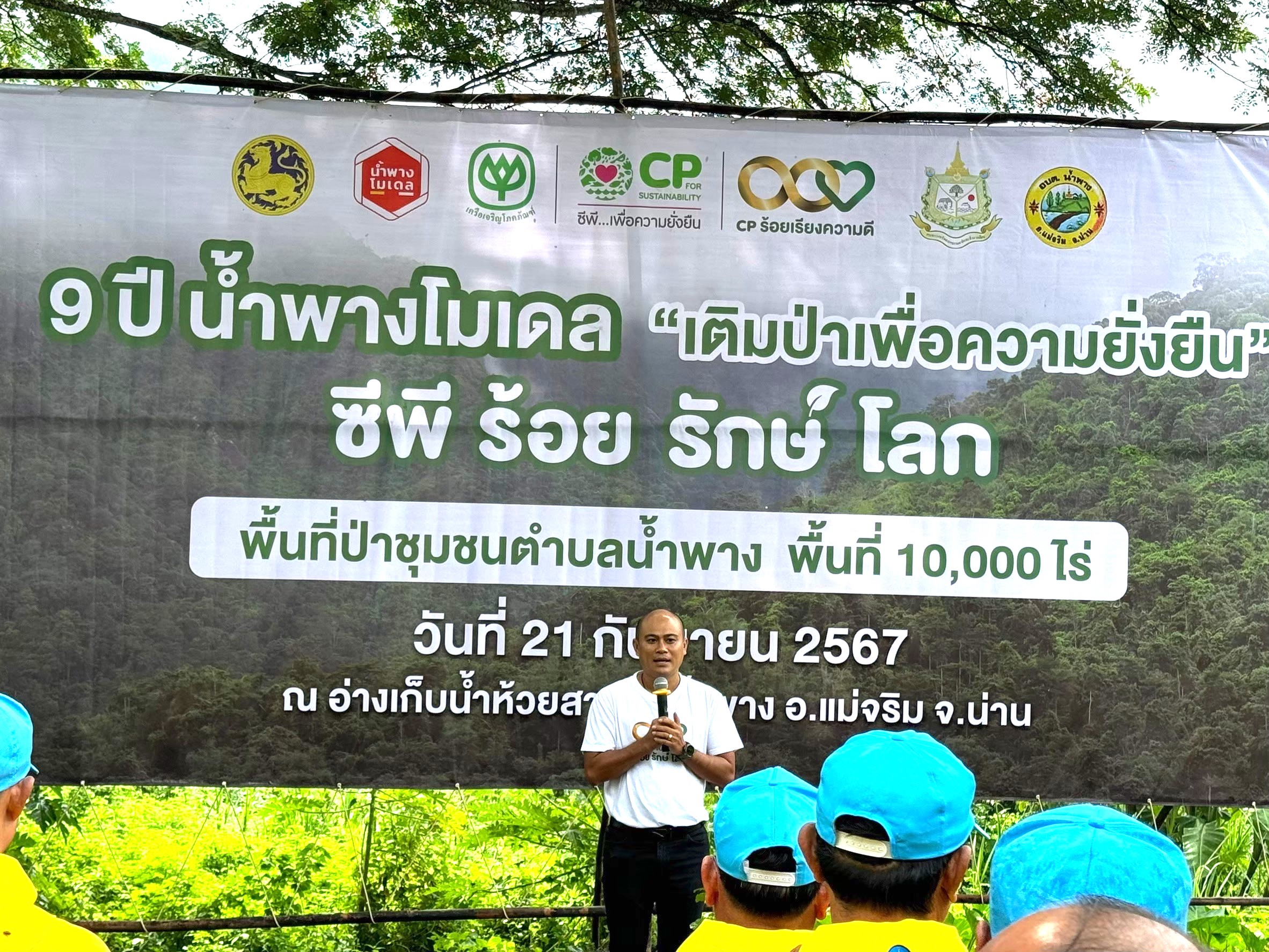 ทางด้าน นายอรรถวิทย์ ยุทธยศ ผู้จัดการทั่วไป ด้านพัฒนาความยั่งยืนภาครัฐและกิจการสัมพันธ์ เครือเจริญโภคภัณฑ์ เปิดเผยว่า เครือเจริญโภคภัณฑ์ เข้ามาดำเนินงานด้านความยั่งยืนในพื้นที่ต.น้ำพาง อ.แม่จริม จ.น่าน ร่วมกับภาครัฐ ภาคประชาสังคม และชุมชน อย่างจริงจังเข้าปีที่ 8 ผ่านโครงการ “น้ำพางโมเดล” เพื่อชุมชนสามารถกำหนดขอบเขต ป้องกันการบุกรุกป่าเพิ่ม รักษาป่าให้คงสภาพ และสร้างระบบนิเวศน์ป่าใหม่ ด้วยการปรับเปลี่ยนจากพืชเชิงเดี่ยวสู่เกษตรผสมผสาน และเป็นต้นแบบที่คนสามารถอยู่ร่วมกับป่าได้อย่างสมดุลและยั่งยืน อีกทั้งเป็นต้นแบบการร่วมบูรณาการระหว่าง ภาคประชาชน ประชาสังคม ภาครัฐ และเอกชน โดยมีการสนับสนุนการเพิ่มพื้นที่ป่า ปลูกต้นไม้เป็นประจำทุกปี ในปีนี้ จัดกิจกรรมปลูกป่า 9 ปีน้ำพางโมเดล “เติมป่าน่าน เพื่อความยั่งยืน” ภายใต้โครงการ ซีพี ร้อย รักษ์โลก ปลูกต้นไม้ จำนวน 10,000 ต้น ในพื้นที่ป่าชุมชน 10,000 ไร่ ครอบคลุม 11 หมู่บ้าน เพื่อเสริมป่าชุมชนให้มีความอุดมสมบูรณ์ เป็นอู่ข้าวอู่น้ำ ปลูกฝังให้ชุมชนให้ความสำคัญกับป่าชุมชนช่วยกันดูแล และอนุรักษ์ให้คงอยู่กับชุมชนอย่างยั่งยืนต่อไป