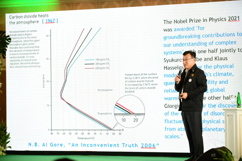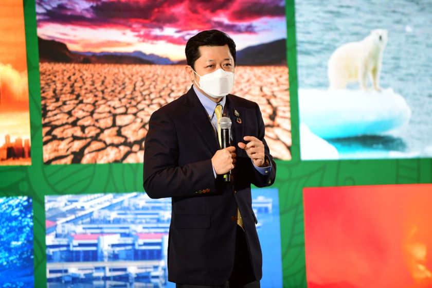 คุณศุภชัย เจียรวนนท์ ได้แลกเปลี่ยนวิสัยทัศน์ในหัวข้อ “Race to Zero: Toward a Green Economy” โดยกล่าวว่า การขับเคลื่อนเรื่อง Climate Action เริ่มจากความตระหนักรู้ ไม่ประมาท ในวันนี้เราจะเห็นความเปลี่ยนแปลงของสภาพภูมิอากาศในช่วงเวลาที่ผ่านมา 20-30 ปี และสิ่งที่เรากำลังใช้อยู่ในการสร้างระบบเศรษฐกิจ สร้างความมั่งคั่ง สร้างงานกระจายรายได้ สร้างเศรษฐกิจให้เติบโต ทั้งโลกที่ขับเคลื่อนมามีส่วนน้อยมากที่จะคำนึงถึงเรื่องความยั่งยืน ถ้าโลกมีการเปลี่ยนแปลงเพียงแค่ 1 องศา สามารถเปลี่ยนวิถีชีวิตของมนุษย์ที่อาศัยอยู่บนโลกได้อย่างมหาศาล