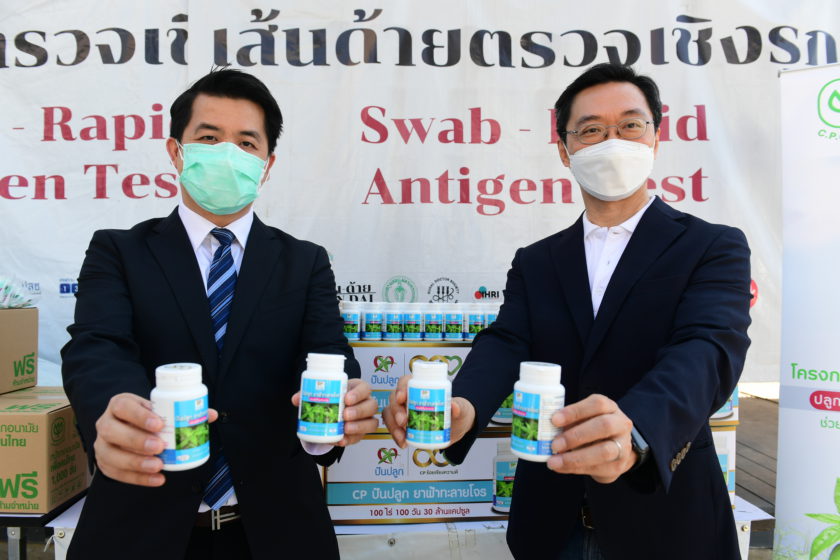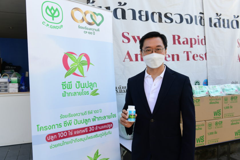 ดร.ธีระพล ถนอมศักดิ์ยุทธ ประธานคณะผู้บริหารยุทธศาสตร์ข้อมูลและการสื่อสาร เครือเจริญโภคภัณฑ์ กล่าวว่า โครงการ “ซีพี ปันปลูก ฟ้าทะลายโจร” ได้เริ่มดำเนินการเพาะปลูกต้นฟ้าทะลายโจร ตั้งแต่วันที่ 12 สิงหาคมเป็นต้นมา ซึ่งเป็นวันแม่แห่งชาติ เพื่อเพิ่มโอกาสให้ประชาชนได้เข้าถึงยาสมุนไพรไทยเพื่อใช้เสริมภูมิคุ้มกันป้องกันโรค ตามนโยบายของนายธนินท์ เจียรวนนท์ ประธานอาวุโส เครือฯ โดยได้เริ่มดำเนินการแจกจ่ายไปยังกลุ่มองค์กรพันธมิตร ภาครัฐ และมูลนิธิต่าง ๆ แล้ว ซึ่งครั้งนี้มีความยินดีอย่างยิ่งที่ได้มอบยาสมุนไพรฟ้าทะลายโจรและหน้ากากอนามัยซีพีให้กับกลุ่มจิตอาสาเส้นด้าย ทีมจิตอาสาที่มีความเสียสละและช่วยเหลือสังคมมาตลอดในช่วงที่ประเทศเผชิญกับสถานการณ์โควิด-19 ซึ่งจะเป็นองค์กรพันธมิตรที่จะนำไปแจกจ่ายถึงมือประชาชนต่อไป