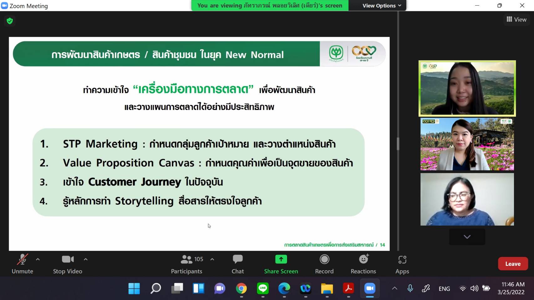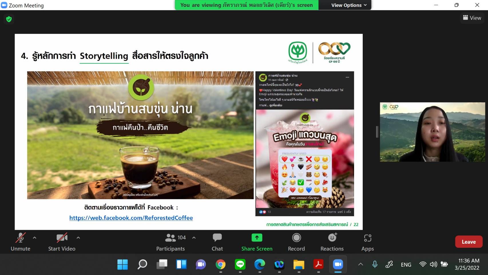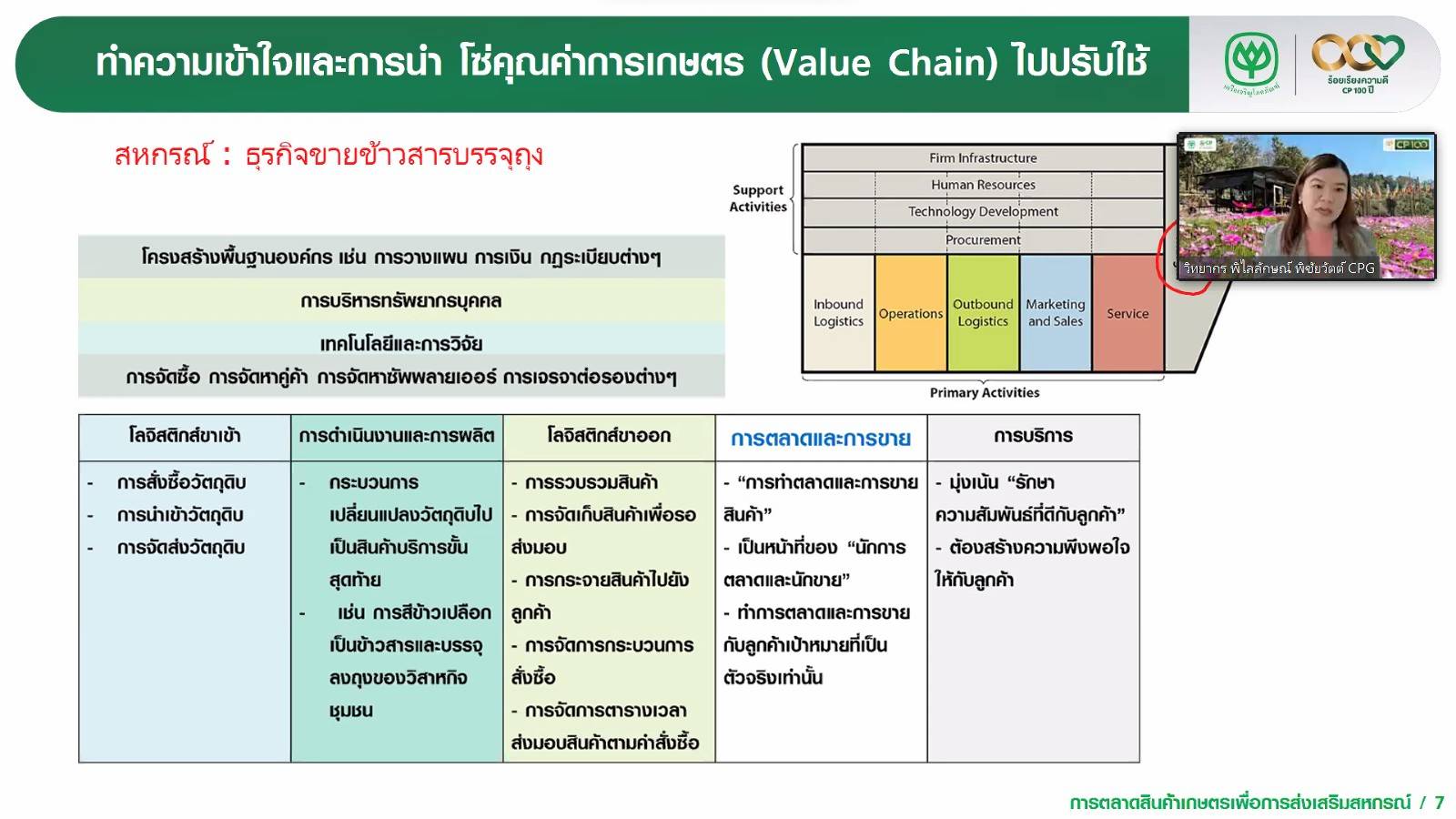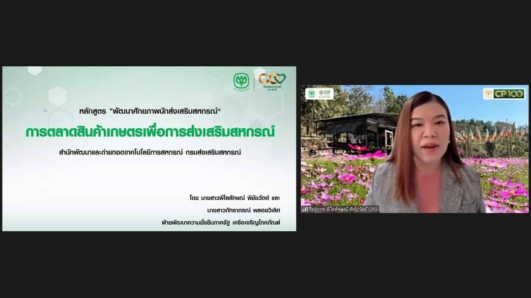 เมื่อเร็วๆ นี้ นางสาวพิไลลักษณ์ พิชัยวัตต์ ผู้ช่วยกรรมการผู้จัดการ ด้านปฏิบัติการความยั่งยืนและกิจการเพื่อสังคม ฝ่ายพัฒนาความยั่งยืนภาครัฐ สำนักบริหารความยั่งยืน ธรรมาภิบาล และสื่อสารองค์กร เครือเจริญโภคภัณฑ์ เป็นวิทยากรบรรยาย หัวข้อ “การตลาดสินค้าเกษตรเพื่อการส่งเสริมสหกรณ์” ในโครงการฝึกอบรม หลักสูตร “การพัฒนาศักยภาพนักส่งเสริมสหกรณ์” รุ่นที่ 1-2 ผ่านระบบสื่อสารออนไลน์ (Zoom Meeting) ให้กับข้าราชการ สังกัดกรมส่งเสริมสหกรณ์ กระทรวงเกษตรเเละสหกรณ์ จำนวน 239 ราย