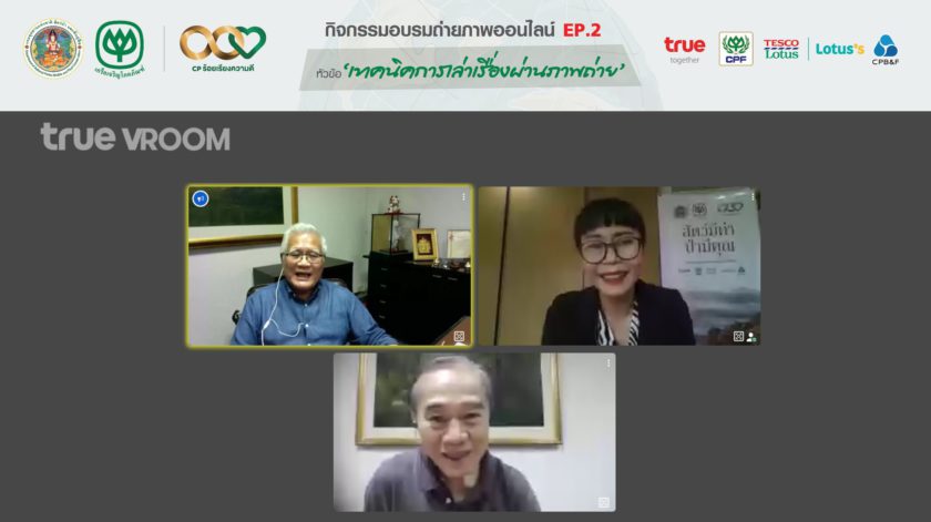 สานต่อเจตนารมณ์อนุรักษ์ธรรมชาติและสิ่งแวดล้อมผ่านภาพถ่ายในยุคโควิดด้วยการจัดกิจกรรมอบรมถ่ายภาพออนไลน์ EP.2 ภายใต้โครงการ “ปลูกจิตสำนึกอนุรักษ์ธรรมชาติและสิ่งแวดล้อมการประกวดภาพถ่าย ‘สัตว์มีค่า ป่ามีคุณ’ ครั้งที่ 27 ประจำปี 2564” โดยกรมอุทยานแห่งชาติฯ เครือเจริญโภคภัณฑ์ กลุ่มทรู และบริษัทในเครือฯ จัดกิจกรรม การอบรมออนไลน์ผ่าน True VROOM ในหัวข้อ ‘เทคนิคการเล่าเรื่องผ่านภาพถ่าย’ มีผู้เข้าร่วมอบรมทั้งจากในเครือ และผู้ที่สนใจจากแฟนเพจ”สัตว์มีค่า ป่ามีคุณ”จำนวน 114 คน มาร่วมเรียนรู้การถ่ายภาพให้มีเรื่องเล่า พร้อมเทคนิคที่น่าสนใจจากคุณไพศาล เจริญจรัสกุล นักถ่ายภาพมากประสบการณ์ ที่เดินทางถ่ายภาพมาแล้ว 7 ทวีปทั่วโลก และ คุณเรวัต นิพัทธโกศลสุข คุณหมอนักถ่ายภาพผู้ได้รับรางวัลระดับโลกจาก จาก Photographic Society of America พร้อมเคล็ดลับการใช้อุปกรณ์ วิธีการเตรียมตัวก่อนออกทริปถ่ายภาพ และการถ่ายภาพอย่างไรให้เป็นมิตรกับธรรมชาติอีกด้วย