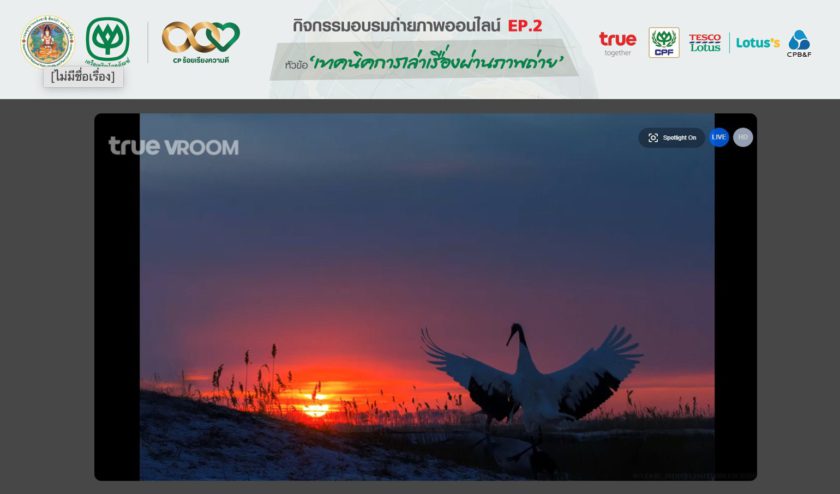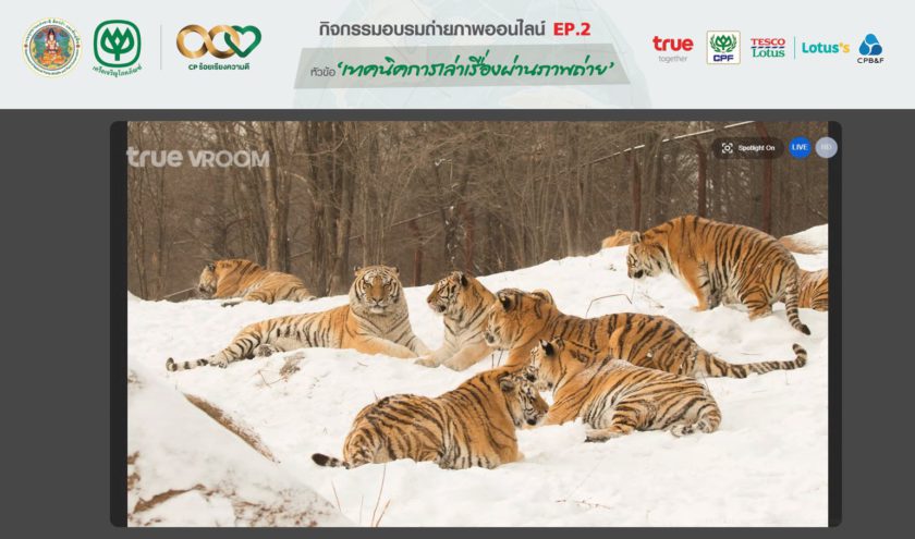 สานต่อเจตนารมณ์อนุรักษ์ธรรมชาติและสิ่งแวดล้อมผ่านภาพถ่ายในยุคโควิดด้วยการจัดกิจกรรมอบรมถ่ายภาพออนไลน์ EP.2 ภายใต้โครงการ “ปลูกจิตสำนึกอนุรักษ์ธรรมชาติและสิ่งแวดล้อมการประกวดภาพถ่าย ‘สัตว์มีค่า ป่ามีคุณ’ ครั้งที่ 27 ประจำปี 2564” โดยกรมอุทยานแห่งชาติฯ เครือเจริญโภคภัณฑ์ กลุ่มทรู และบริษัทในเครือฯ จัดกิจกรรม การอบรมออนไลน์ผ่าน True VROOM ในหัวข้อ ‘เทคนิคการเล่าเรื่องผ่านภาพถ่าย’ มีผู้เข้าร่วมอบรมทั้งจากในเครือ และผู้ที่สนใจจากแฟนเพจ”สัตว์มีค่า ป่ามีคุณ”จำนวน 114 คน มาร่วมเรียนรู้การถ่ายภาพให้มีเรื่องเล่า พร้อมเทคนิคที่น่าสนใจจากคุณไพศาล เจริญจรัสกุล นักถ่ายภาพมากประสบการณ์ ที่เดินทางถ่ายภาพมาแล้ว 7 ทวีปทั่วโลก และ คุณเรวัต นิพัทธโกศลสุข คุณหมอนักถ่ายภาพผู้ได้รับรางวัลระดับโลกจาก จาก Photographic Society of America พร้อมเคล็ดลับการใช้อุปกรณ์ วิธีการเตรียมตัวก่อนออกทริปถ่ายภาพ และการถ่ายภาพอย่างไรให้เป็นมิตรกับธรรมชาติอีกด้วย