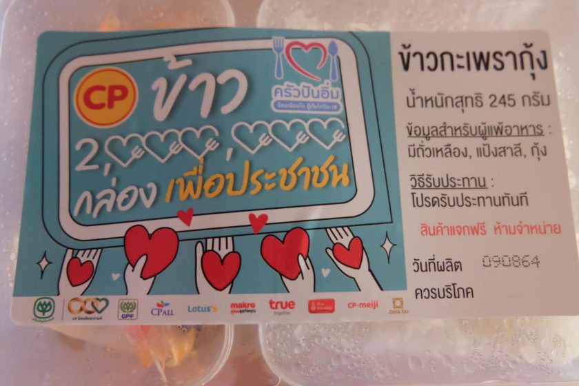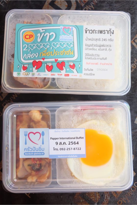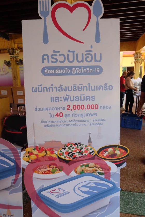 โครงการจะจัดซื้ออาหารจากร้านค้าขนาดเล็กและกลาง 1 ล้านกล่อง เครือซีพีสมทบอาหารพร่อมทาน 1 ล้านกล่อง แจกทั่วกรุงเทพ 40 จุด เป็นเวลา 50 วัน รวม 2,000,000 กล่อง