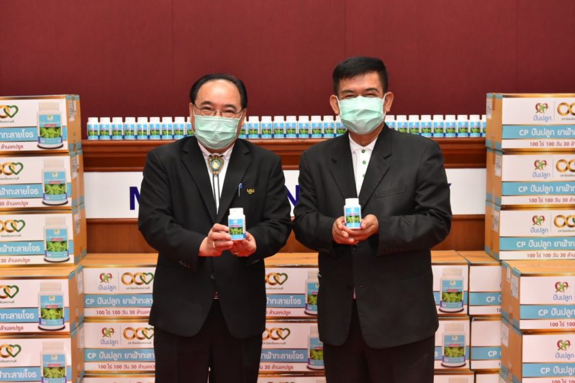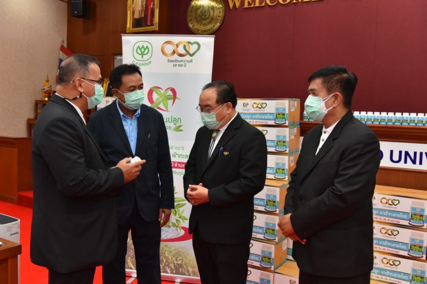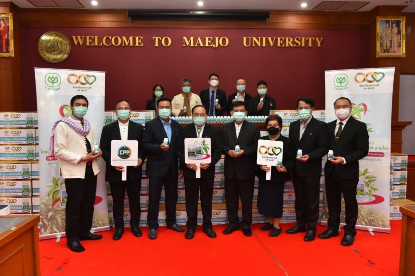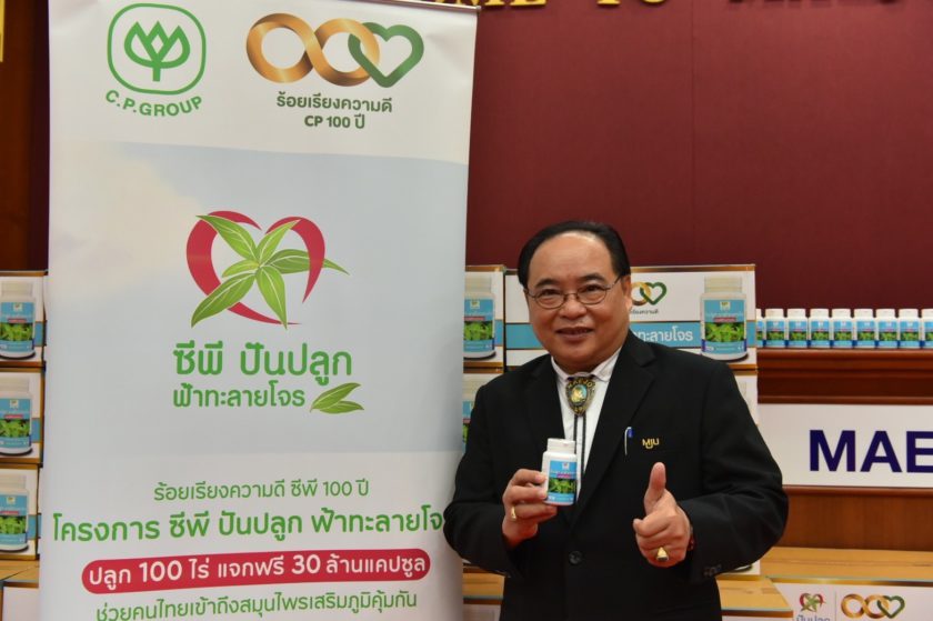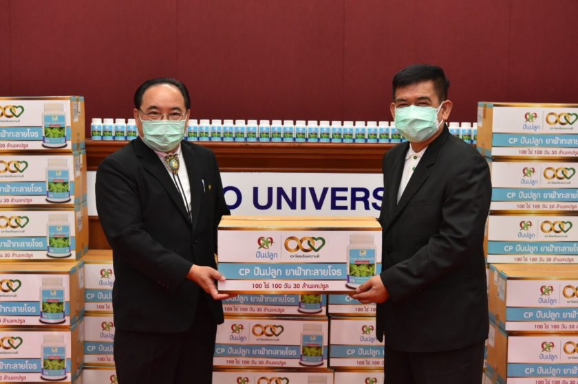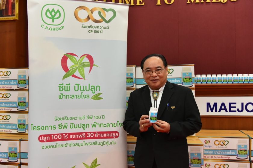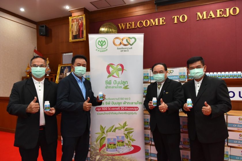 วันที่ 8 ธันวาคม 2564 คุณเฉลิม บุญประเชิญ รองกรรมการผู้จัดการบริหาร บริษัท เจริญโภคภัณฑ์โปรดิ๊วส จำกัด พร้อมคณะผู้บริหาร เป็นผู้แทนเครือเจริญโภคภัณฑ์ มอบ ปันปลูก-ฟ้าทะลายโจร จำนวน 10,000 กระปุก ให้มหาวิทยาลัยแม่โจ้ จ.เชียงใหม่ โดยมี รศ.ดร.วีระพล ทองมา อธิการบดี, รศ.ดร.เกรียงศักดิ์ ศรีเงินยวง รองอธิการบดี และ ผศ.ดร.บัญญัติ มนเทียรอาสน์ รองอธิการบดี มหาวิทยาลัยแม่โจ้ ให้เกียรติเป็นผู้รับมอบ เพื่อนำไปแจกจ่ายให้ประชาชนกลุ่มเสี่ยง ในพื้นที่ และใน MJU Hospitech 2 แห่ง คือ อ.พร้าว อ.สันทราย รวมทั้งบุคลากร และนักศึกษา ของมหาวิทยาลัย เสริมภูมิคุ้มกันให้กับประชาชนในชุมชน ตามดำริท่านประธานอาวุโส เครือซีพี