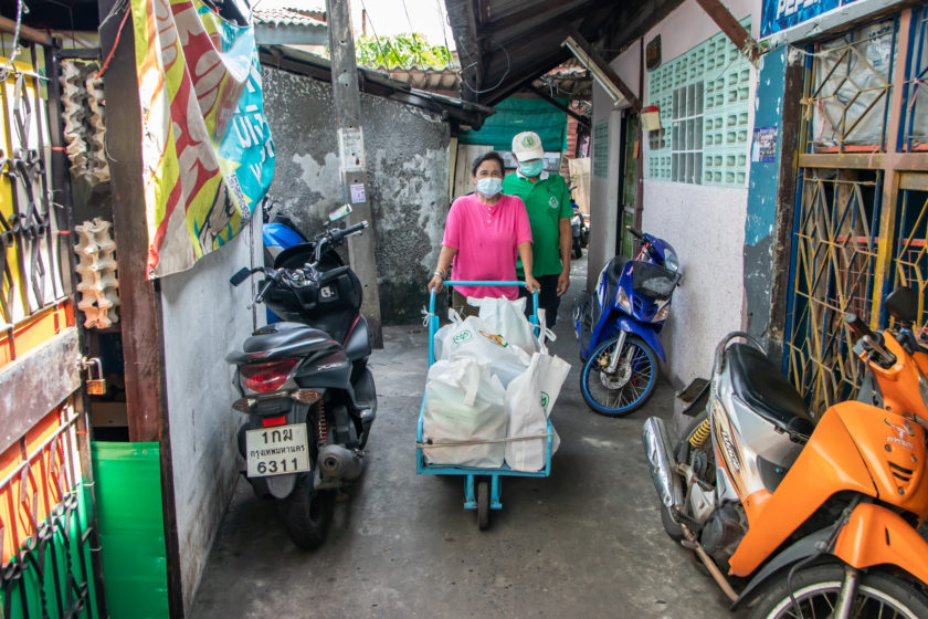 ด้วยเหตุนี้จึงผนึกกำลังกับเครือข่ายองค์กรเอกชน และมูลนิธิ ต่าง ๆ ได้แก่ เครือข่าย URBAN ACTIONS เพื่อการพัฒนาเมือง มูลนิธิพุทธรักษา บริษัท รถไฟความเร็วสูงสายตะวันออกเชื่อมสามสนามบิน จํากัด และโครงการครัวปันอิ่มของเครือเจริญโภคภัณฑ์ จัดทำถุงยังชีพ บรรจุ ข้าวสาร อาหารแห้ง และของใช้จำเป็นอย่างอื่น สามารถเก็บไว้ได้นาน ทำให้ลดภาระและบรรเทาความเดือดร้อนให้คนในชุมชน ลดความเสี่ยงออกจากบ้าน สามารถป้องกันการแพร่ระบาดโควิด-19 ไม่กระจายไปนอกพื้นที่