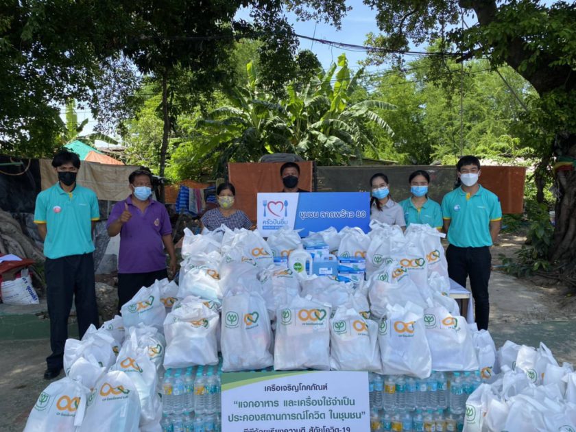 ในการนี้ เครือเจริญโภคภัณฑ์จึงได้จับมือกับ เครือข่าย URBAN ACTIONS เพื่อการพัฒนาเมือง มูลนิธิพุทธรักษา บริษัท รถไฟความเร็วสูงสายตะวันออกเชื่อมสามสนามบิน จํากัด เพื่อร่วมร้อยเรียงความดีสู่สังคม จัดทำถุงยังชีพครัวปันอิ่ม “แจกอาหาร และเครื่องใช้จำเป็นประคองสถานการณ์โควิดในชุมชน” ช่วยเหลือชุมชนริมคลองและชุมชนริมทางรถไฟในกรุงเทพฯ จำนวน 43 ชุมชน และอีก 1 ชุมชนในจังหวัดสมุทรปราการ เพื่อบรรเทาความเดือดร้อนจากวิกฤติโควิด-19 แก่ผู้ที่ได้รับผลกระทบในชุมชน ซึ่งมีทั้งผู้ที่ขาดรายได้ ว่างงาน กลุ่มเปราะบาง กลุ่มที่กักตัวดูอาการ และผู้ที่รักษาตัวที่บ้านหรือ Home Isolation