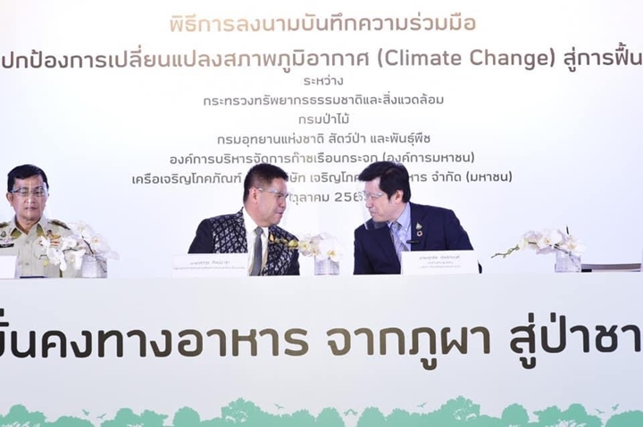 คุณศุภชัย เจียรวนนท์ ประธานคณะผู้บริหาร บริษัท เครือเจริญโภคภัณฑ์ จำกัด ประกาศความมุ่งมั่นในการขับเคลื่อนองค์กรแห่ง Carbon Neutral ตามเป้าหมายการพัฒนาที่ยั่งยืน 2030 ของเครือเจริญโภคภัณฑ์ ในพิธีลงนามบันทึกความร่วมมือการปกป้องการเปลี่ยนแปลงสภาพภูมิอากาศ(Climate Change)ระหว่างกรมอุทยานแห่งชาติ สัตว์ป่า และพันธุ์พืช องค์การบริหารจัดการก๊าซเรือนกระจก (องค์การมหาชน) และบริษัทเจริญโภคภัณฑ์อาหาร จำกัด (มหาชน) หรือซีพีเอฟ ซึ่งเป็นบริษัทหลักในกลุ่มธุรกิจเกษตรอุตสาหกรรมและอาหาร ของเครือเจริญโภคภัณฑ์ โดยระบุว่าเครือเจริญโภคภัณฑ์มีความตระหนักในเรื่องความไม่ยั่งยืน ด้วยเพราะในวิถีของระบบเศรษฐกิจโลก วิถีของระบบการบริโภค วิถีการผลิต ได้สร้างมลพิษ สร้างภาวะเรือนกระจก หรือ คาร์บอนฟุตพริ้นท์ อีกทั้งยังสร้าง Waste หรือ ขยะต่างๆ ซึ่งมีผลกระทบต่อระบบนิเวศทั้งบนบกและในน้ำ รวมถึงในอากาศ กล่าวได้ว่านับตั้งแต่เราเข้าสู่ยุคอุตสาหกรรมเราให้ความสำคัญกับเพิ่มผลิตภาพ หรือ Productivity ซึ่งมี GDP (Gross Domestic Product) เป็นตัวขับเคลื่อน แต่ในอนาคตอันใกล้หรือในปัจจุบันวิถีในการดำเนินเศรษฐกิจ การบริโภค และการผลิตตลอดห่วงโซ่อุปทาน จะต้องมีให้ความสำคัญกับ Gross Domestic Sustainability (GDS) หรือ ความยั่งยืนขั้นต้นในประเทศ โดยบริษัทที่จดทะเบียนในตลาดหลักทรัพย์ฯ ทุกบริษัทมีหน้าที่ที่จะต้องตระหนักรู้ วางเป้าหมาย วางตัวชี้วัด เพื่อก้าวสู่ยุคที่มีความรับผิดชอบต่อสิ่งแวดล้อม สังคม และความยั่งยืน เช่น การตั้งเป้าหมาย Neutral Carbon Footprint คือการผลิตที่สร้างคาร์บอนเป็นศูนย์ หรือลดก๊าซเรือนกระจกให้หายไป เพื่อกลับมารักษาสมดุลของชั้นบรรยากาศและอุณหภูมิโลก ตลอดจนรักษาสิ่งมีชีวิตบนโลกทั้งพืชพรรณ สัตว์ป่านานาชนิดเพื่อไม่ให้สูญพันธุ์ ทั้งหมดก็เพื่อลูกหลานเราในอนาคต