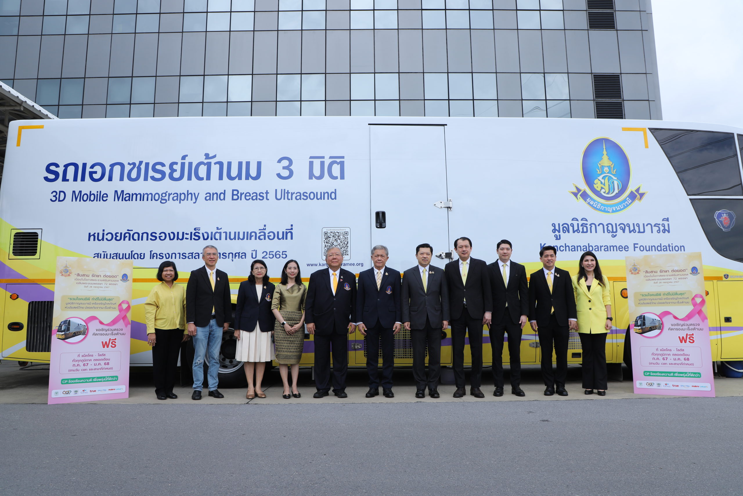 11 กรกฎาคม 2567 – มะเร็งเต้านมเป็นโรคมะเร็งที่พบมากที่สุดของผู้หญิงไทยและทั่วโลก ข้อมูลจากองค์การอนามัยโลก พบว่าในแต่ละปีมีผู้หญิงไทยป่วยเป็นมะเร็งเต้านมรายใหม่ประมาณ 22,158 ราย/ปี เสียชีวิตกว่า 8,266 ราย/ปี หากไม่มีการตรวจคัดกรองมะเร็งเบื้องต้นที่เหมาะสมและทันท่วงที  มูลนิธิกาญจนบารมี จึงร่วมกับบริษัท เครือเจริญโภคภัณฑ์ จำกัด (ซีพี) และบริษัทในเครือฯ  เปิดพื้นที่ร้านค้าปลีก-ค้าส่งในเครือฯ ได้แก่ แม็คโคร และโลตัส  นำรถเคลื่อนที่ตรวจมะเร็งเต้านมจากมูลนิธิกาญจนบารมี เป็นบริการสังคมฟรีเพื่อผู้หญิงไทยโดยเฉพาะกลุ่มเปราะบางได้มีโอกาสเข้าถึงการตรวจสุขภาพ  เนื่องในโอกาสมหามงคลเฉลิมพระชนมพรรษาพระบาทสมเด็จพระเจ้าอยู่หัว ทรงเจริญพระชนมพรรษา 72 พรรษา 28 กรกฎาคม 2567 โดยกิจกรรมนี้ตั้งเป้าหมายให้ผู้หญิงไทยได้รับการตรวจมะเร็งเต้านมประมาณ 10,000 คนทั่วประเทศ  ทั้งนี้มูลนิธิกาญจนบารมีและเครือเจริญโภคภัณฑ์ได้จัดพิธีเปิดบริการรถเคลื่อนที่ตรวจมะเร็งเต้านมฟรีเพื่อสุขภาพผู้หญิง ณ ซีพี แอ็กซ์ตร้า สำนักงานใหญ่ พัฒนาการ กรุงเทพฯ โดยมี คุณศุภชัย เจียรวนนท์ ประธานคณะผู้บริหาร เครือเจริญโภคภัณฑ์ และประธานกรรมการ บริษัท ซีพี แอ็กซ์ตร้า จำกัด (มหาชน) และดร.นพ.สมยศ ดีรัศมี ประธานมูลนิธิกาญจนบารมี  เป็นประธานในพิธี พร้อมด้วย คุณธานินทร์ บูรณมานิต ประธานเจ้าหน้าที่บริหาร บริษัท ซีพี แอ็กซ์ตร้า จำกัด (มหาชน) คุณบุญชัย ปัณฑุรอัมพร ประธานคณะกรรมการบริหาร บริษัท ซาบีน่า จำกัด (มหาชน) และผู้บริหาร พนักงานจากบริษัทในเครือซีพี และซีพี แอ็กซตร้า ฯลฯ เพื่อเชิญชวนผู้หญิงไทยทั่วประเทศเข้าร่วมตรวจคัดกรองมะเร็งเต้านมเบื้องต้นโดยไม่เสียค่าใช้จ่ายที่แม็คโครและโลตัสทุกภูมิภาค รวม 24 จุด แบ่งเป็น 23 สาขา และสำนักงานใหญ่ซีพี แอ็กซตร้าอีก 1 แห่ง ตลอดเดือนกรกฎาคม 2567- มกราคม 2568 รวมทั้งจัดพื้นที่ให้พนักงาน จิตอาสา และประชาชนทั่วไปทำความดีเย็บเต้านมเทียมรวม 1,200 ชิ้น มอบให้ผู้ป่วยมะเร็งเต้านม
