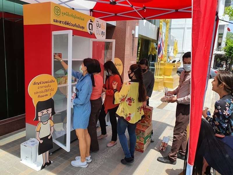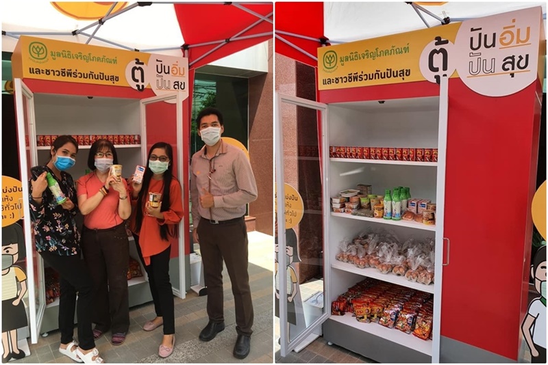 ภายหลังมูลนิธิเจริญโภคภัณฑ์และผู้บริหาร พนักงานซีพีที่ตรอกจันทน์ร่วมกันตั้ง ”ตู้ปันอิ่ม ปันสุข” เพื่อนำอาหาร เครื่องดื่มมาให้ประชาชนเพื่อบรรเทาความเดือดร้อนจากภัยโควิด-19 โดย คุณจิระศักดิ์ เสงี่ยมกิตติกุล ประธานคณะผู้บริหารเจริญโภคภัณฑ์วิศวกรรม ชวนเพื่อนๆพนักงานกลุ่มธุรกิจพืชครบวงจรนำข้าวสารอาหารแห้ง น้ำดื่มมาเติมตู้ปันอิ่ม ปันสุข ขออนุโมทนาทุกท่านนะคะ