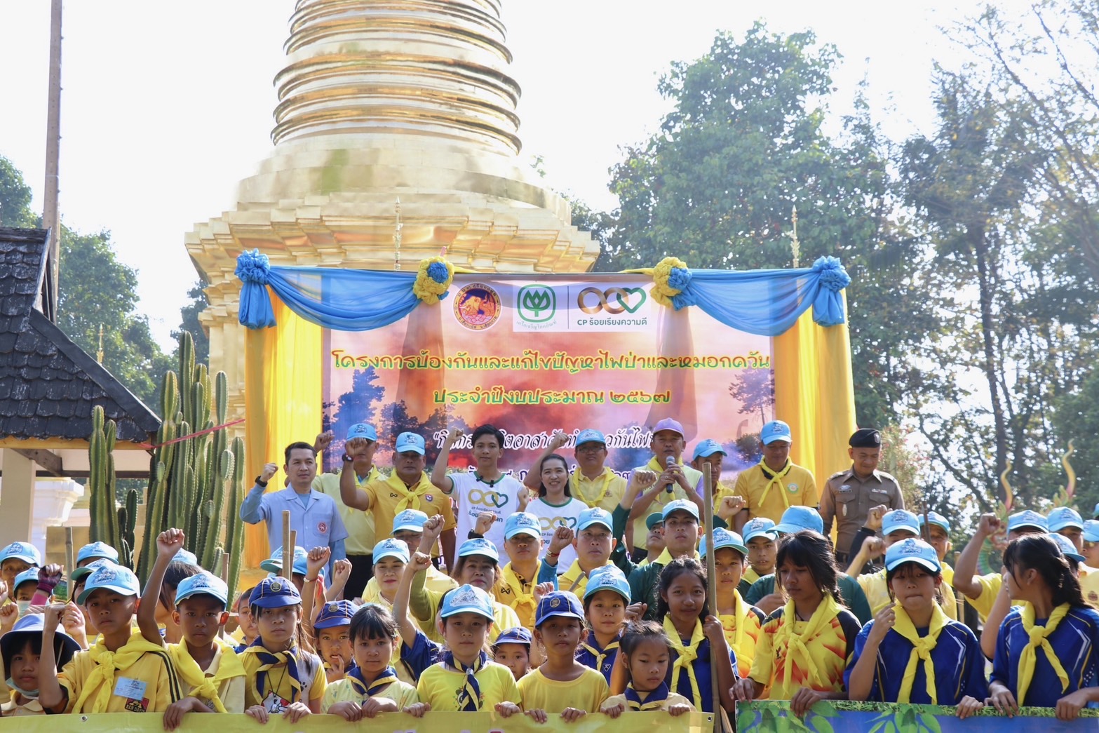 รองผู้จัดการฝ่าย ด้านพัฒนาความยั่งยืนภาครัฐและกิจการสัมพันธ์ เครือเจริญโภคภัณฑ์ ผู้นำชุมชน ประชาชนจิตอาสา หน่วยงานภาครัฐ อาสาสมัครในพื้นที่กว่า 200 คน ร่วมสร้างแนวป้องกันไฟป่าระยะทาง 2 กิโลเมตร เพื่อป้องกันแก้ไขปัญหาหมอกควันไฟป่าและฝุ่นพิษ PM 2.5 ในพื้นที่ ณ พื้นที่ป่าดอยนางคอย ศรีดอนมูล อ.เชียงแสน จ.เชียงราย
